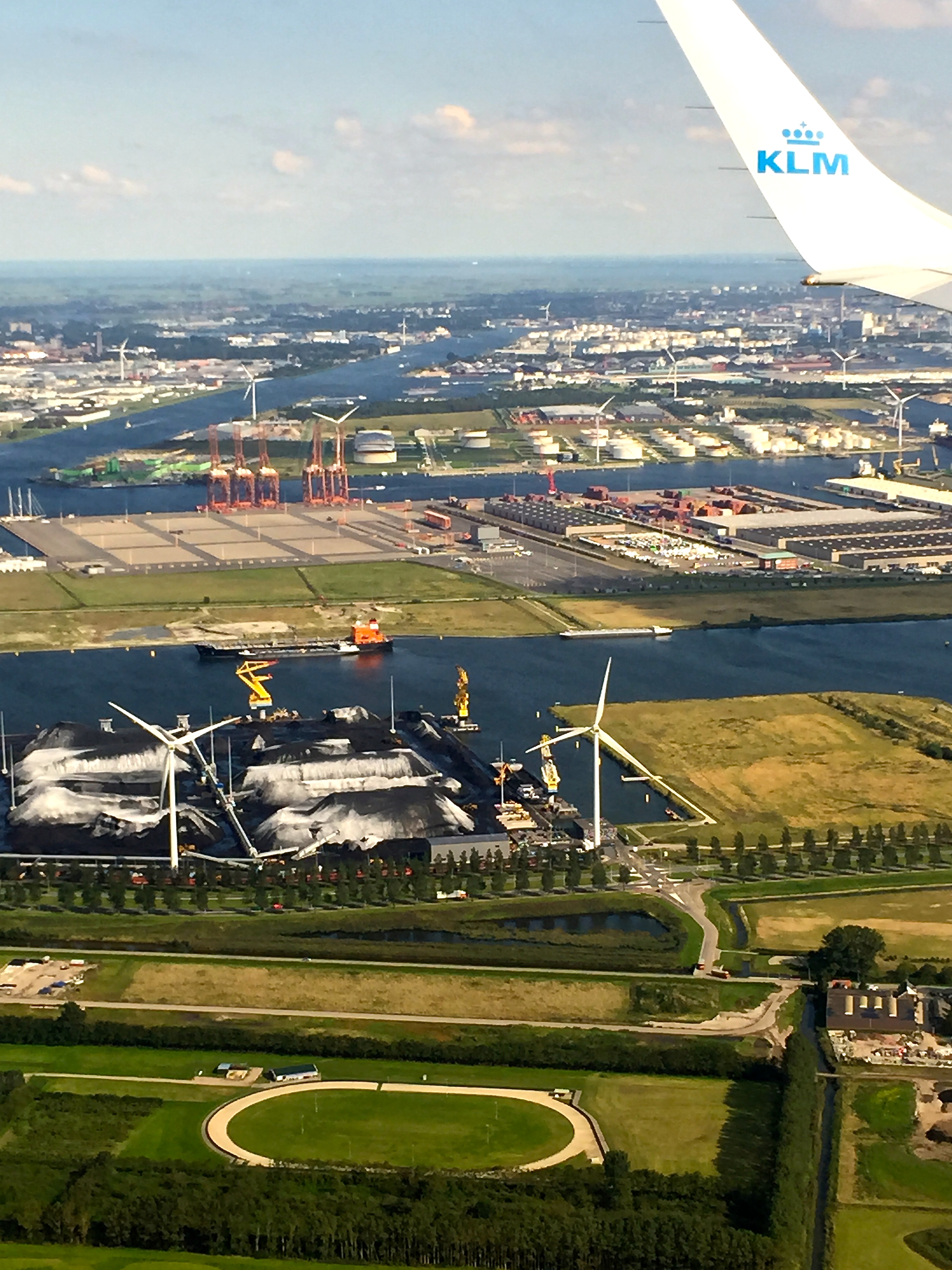 Thousands of canals neatly cleave and drain the below-sea-level landscape into perfect little pastoral parcels, although industry has clearly carved out some space.