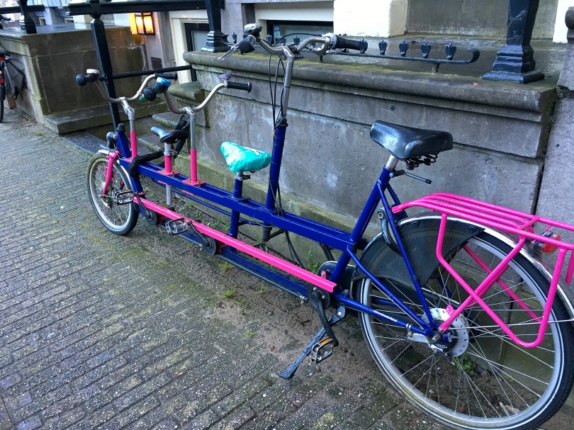 IMG_3064 July 20, 2016 4032 × 3024 Atmospheric Amsterdam Three-seater, anyone? Cycling around Amsterdam is easy because the city — and the whole country, for that matter — is incredibly flat. No need to worry about the weight of chugging three people on one bike up a hill.