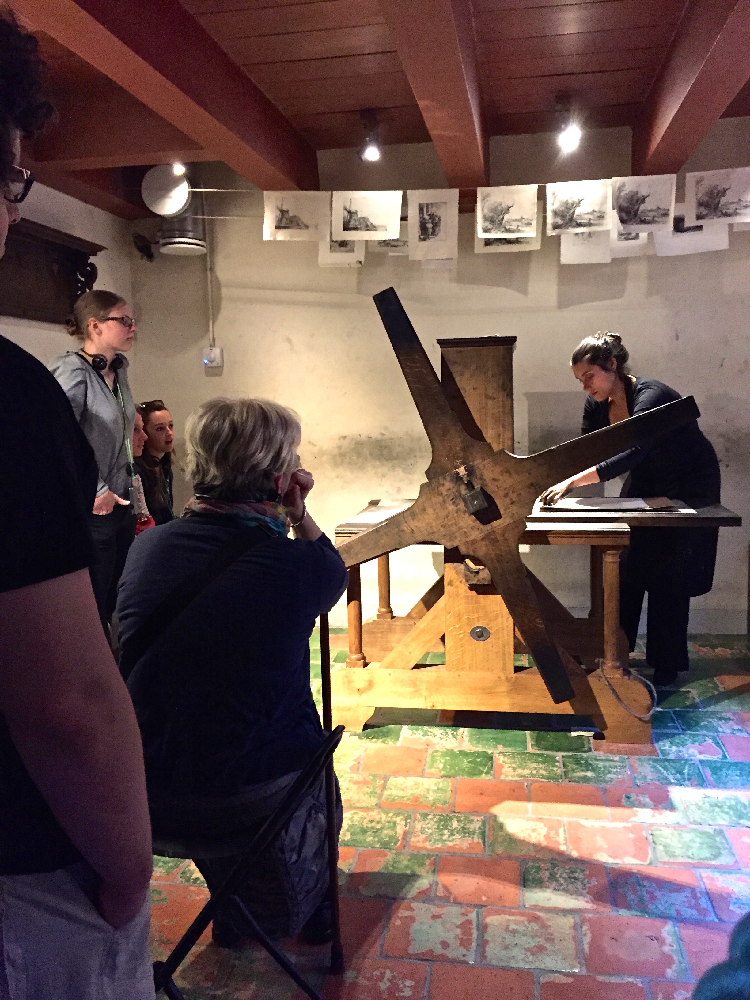 IMG_5299 July 20, 2016 2448 × 3264 Atmospheric Amsterdam Here, an artist runs prints on a replica of Rembrandt’s press using copies of some of his etchings. Pretty amazing stuff.