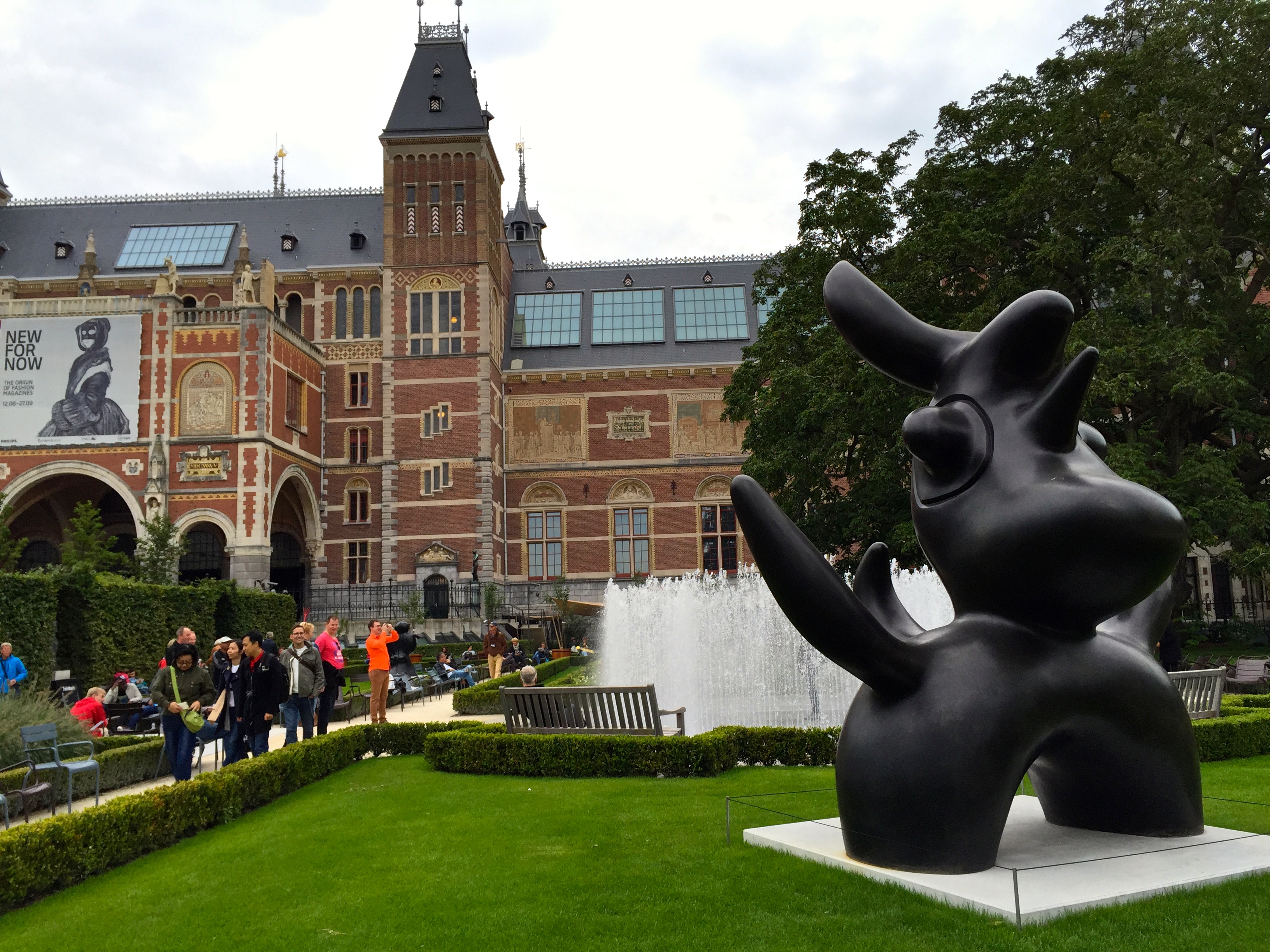 Jumping out of the 17th century for a minute, the Rijksmuseum also currently has a fabulous outdoor display of modernist sculptures by Joan Miró. (I love the juxtaposition of the almost primitive, free-form Lunar Bird against the rather rigid and sophisticated museum exterior. The gardens here are a great place to recoup after immersing yourself in dark Dutch Masterworks.