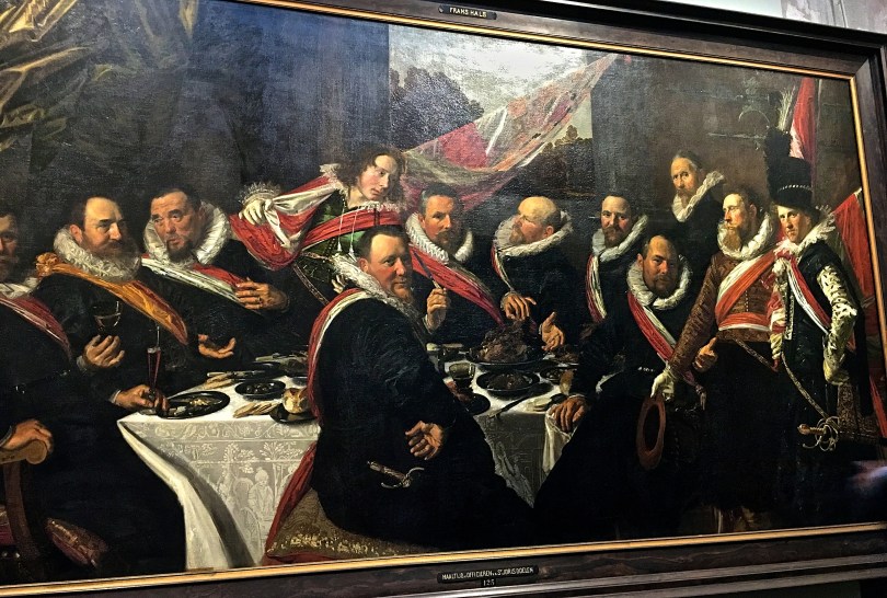 The “Banquet of the Officers of the St. George Civic Guard” has that characteristic lifelike trademark of Hals’ work. You feel as if you’ve just interrupted the frat boys at their kegger. And from the mocking looks on their faces, they’re not particularly impressed with you. The Civic Guards were wealthy merchants, bankers, and tradesmen who’d been elected by citizens to protect the city in case of attack. Methinks meetings were mostly an excuse to party. Hals, Rembrandt, and other Dutch Masters painted lots of Civic Guard portraits during their careers.