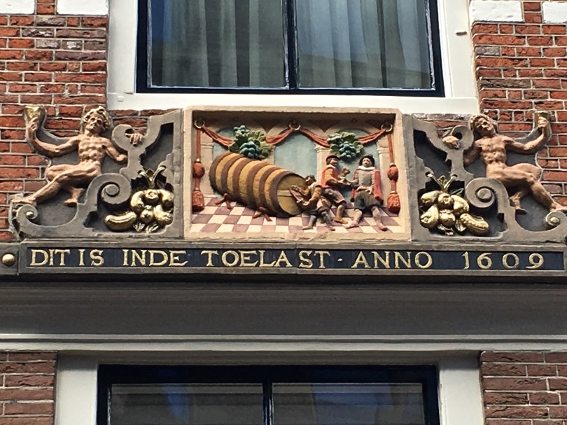 Many of Haarlem’s buildings still have their original signs over their doors. Most have not only text, but also images describing what they do for folks who couldn’t read. Here, the beer barrel advertises that this establishment was an inn that served from a Toelast (a 600-liter barrel of beer). Architect Lieven de Key, who designed the Vleeschhall, built this inn in 1609.