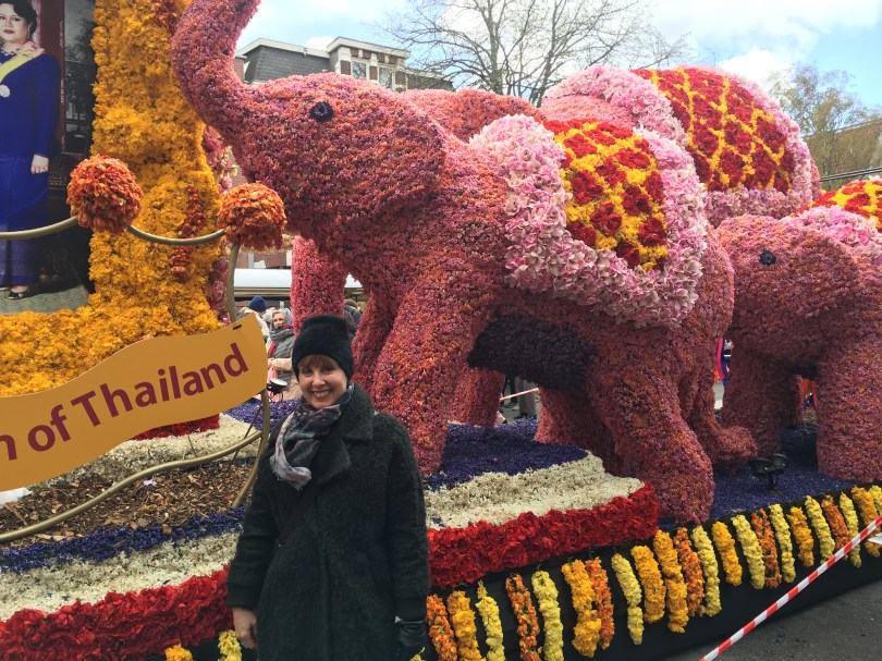 IMG_2947 July 26, 2016 4032 × 3024 Amsterdam’s Flower Festival The King and Queen of Thailand sponsored this float promoting the flavors of their country. The baby pink elephants are also a theme on Delirium Tremens Belgian beer bottles — wonder if their royal highnesses intended the pun?