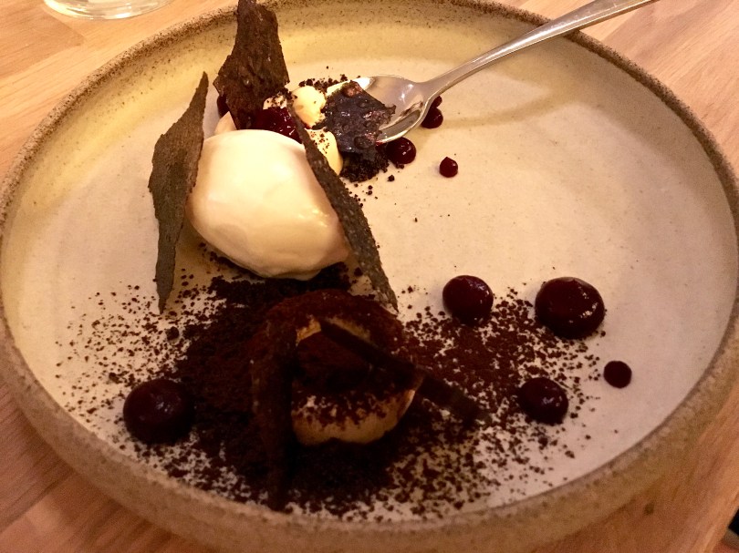 IMG_1391 August 12, 2016 4032 × 3024 Bokbacka Restaurant The tart berries and earthy malt flavors blended beautifully with the rich, Norwegian brown-cheese ice cream.