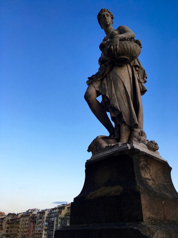 Four ornamental sculptures representing the four seasons were added to the Ponte Santa Trinita in 1608 to celebrate Cosimo II de’ Medici’s wedding. After the German bombing, the head of Spring was lost. American soldiers aiding the city during its reconstruction put an advertisement in the paper offering a sizable reward for the return of the head. It worked, and today Spring bears only a seam around her neck to remind her of her temporary beheading.