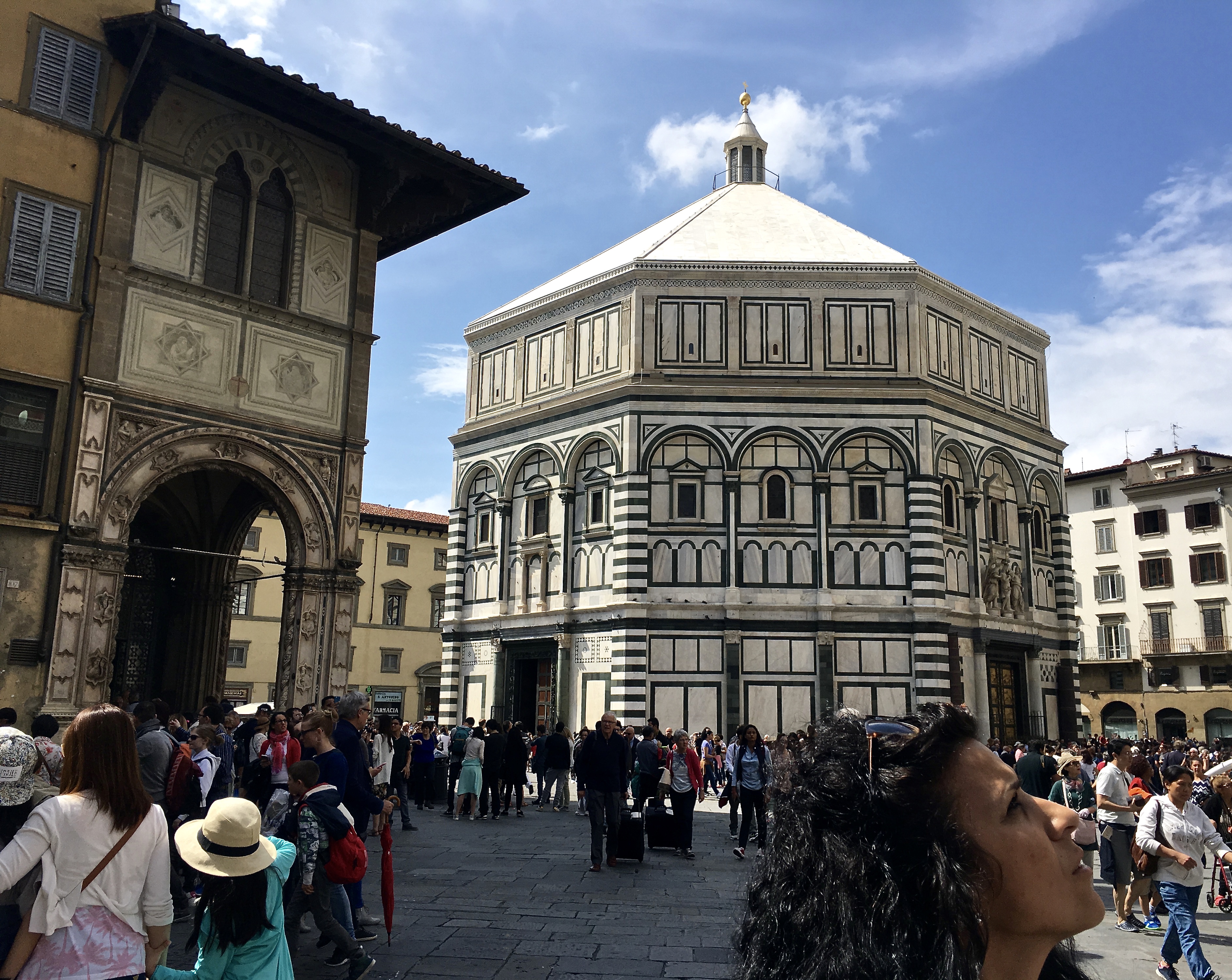 One of the oldest buildings in Florence, the Baptistery was constructed between 1059 and 1128. It’s done in Florentine Romanesque style, which includes an eight-sided design symbolizing the six days of creation, the seventh day of rest, and the eighth day of re-birth upon completion of the baptismal ceremony.