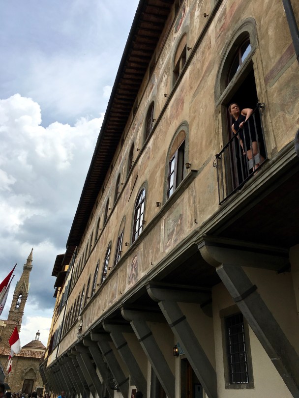 IMG_5858 August 17, 2016 3024 × 4032 Italy: Florence in A Flash Yet another lovely building … and another street gawker. Spending the day watching who’s dawdling down the sidewalk seems like a perfectly acceptable use of time in laid-back Florence.