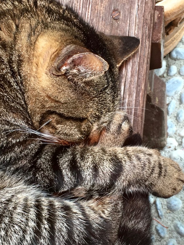 IMG_1884 August 20, 2016 3024 × 4032 Italy: Trekking the Cinque Terre La Laterna’s tomcat, named Michelou, had spent the night carousing. He wasn’t about to give up his seat — or interrupt his catnap — to let us share his table-side bench. Until our fish arrived. Suddenly, we became absolutely fascinating.