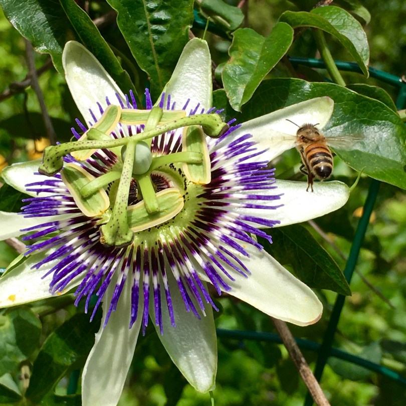 IMG_5607 August 22, 2016 3024 × 3024 Italy: Trekking the Cinque Terre Passing by a farmer’s field, we saw this Blue Passionflower (Passiflora caerulea) being tended to by a bee. Many of the grocers in town carried passionfruit as picnic fare.