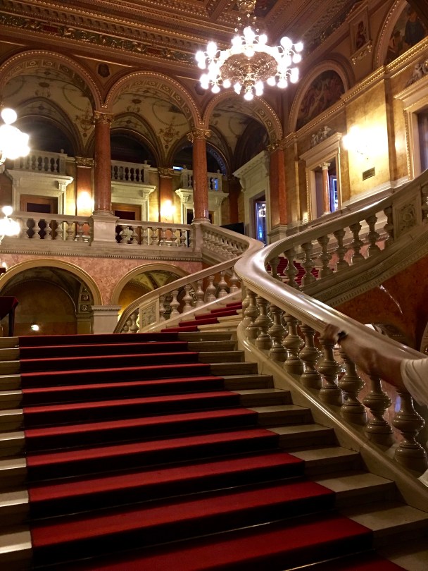 Every opera needs a grand staircase for the ladies to show off their fabulous dresses. The marble columns came from Croatia, which was technically one of Hungary’s holdings at the time. When the builders eventually ran out of marble, they used pyrogranite columns made by Zolnay, the famous Hungarian ceramics company. The ceramic material resembles real marble to a remarkable degree.