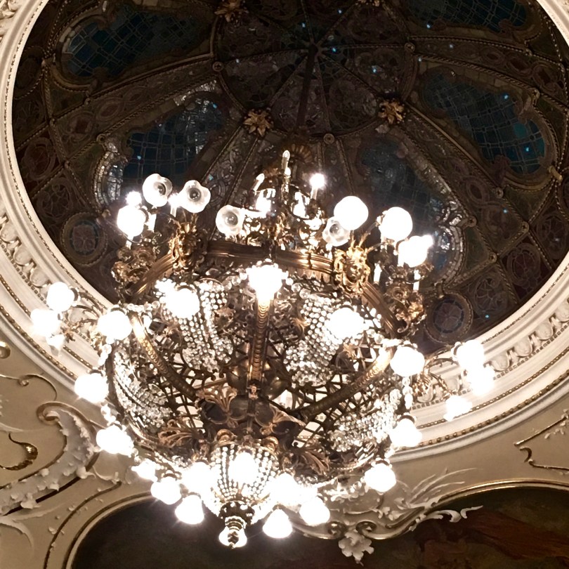 img_6358 October 21, 2016 3024 × 3024 Budapest Bound Check out the gorgeous ceiling and chandelier of the hall where the Hungarian Folk Ensemble performs.