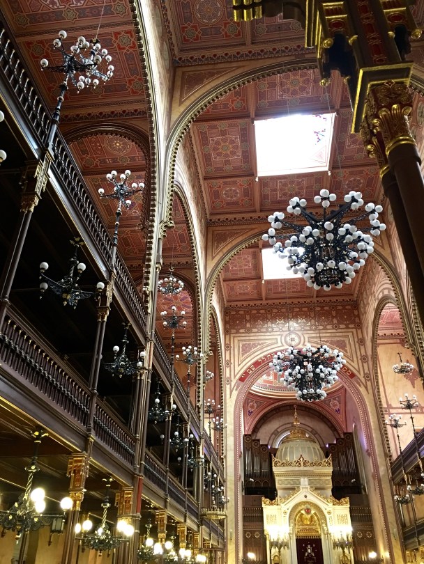 The interior of the synagogue also bears a striking resemblance to that of a Christian church, complete with cruciform floor plan, pulpit, pews, grand chandeliers, kneelers, and a pipe organ. (The famous composer and pianist Franz Liszt played it for the building’s inauguration.) As you might expect from these details, the synagogue was and still is home to a more liberal branch of Judaism. But despite these efforts to assimilate into the community, the congregation here suffered deportment and death. The Nazis stuck radio antennae on the two towers and the Gestapo established a base in the balcony.