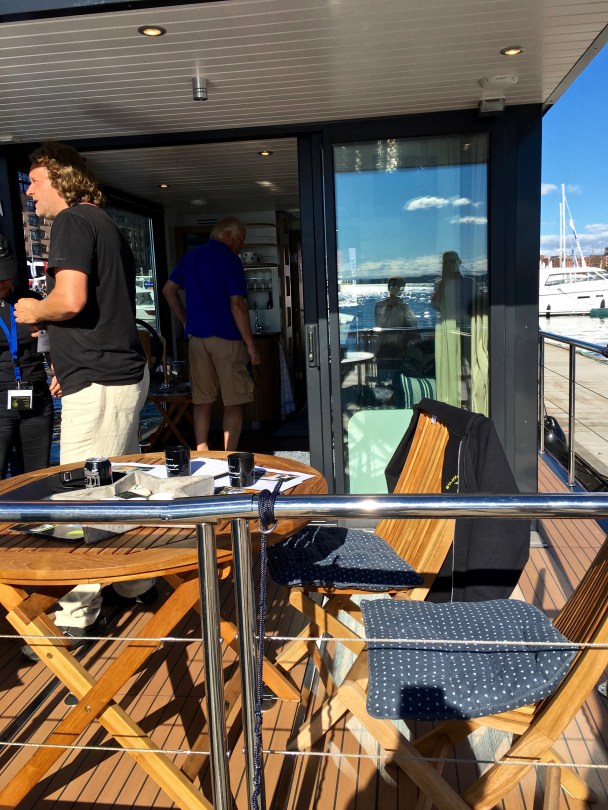 img_6934 November 1, 2016 3024 × 4032 The Oslo Boat Show & Norwegian Food Fest Just a quick pic of the Liberty houseboat’s awesome front deck / kitchen dinette area. I could see myself trading in our condo for summer living aboard this cutie. If only it weren’t for that pesky floating part.