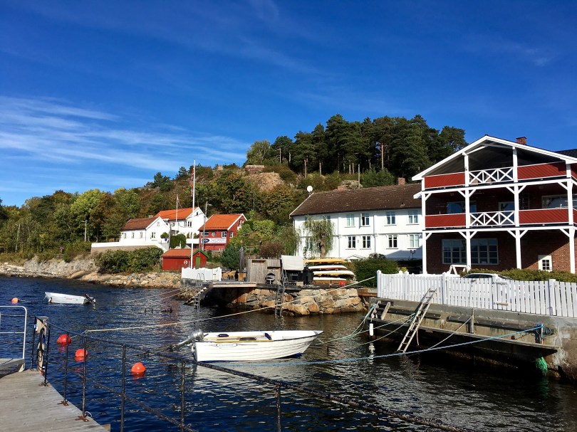 img_7275 November 16, 2016 4032 × 3024 Oscarsborg Fortress If you look closely, you can see one of the WWII coastal guns that fired upon the Blücher. Look for the tiny brown bunker sitting on a rocky outcropping just below the hilltop and above the little red house.