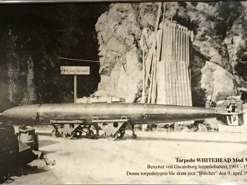 The Nazis knew of Oscarborg and its antiquated guns but had no knowledge of its hidden torpedo battery. A natural cave had been enlarged and enhanced with three torpedo chambers loaded via underwater cage elevators. The Blücher unwittingly passed with 500 m (550 yards) of the torpedo battery. Colonel Andreas took aim and sent two torpedoes racing towards their target, hidden underwater at a depth of 3 m (9.8 ft).