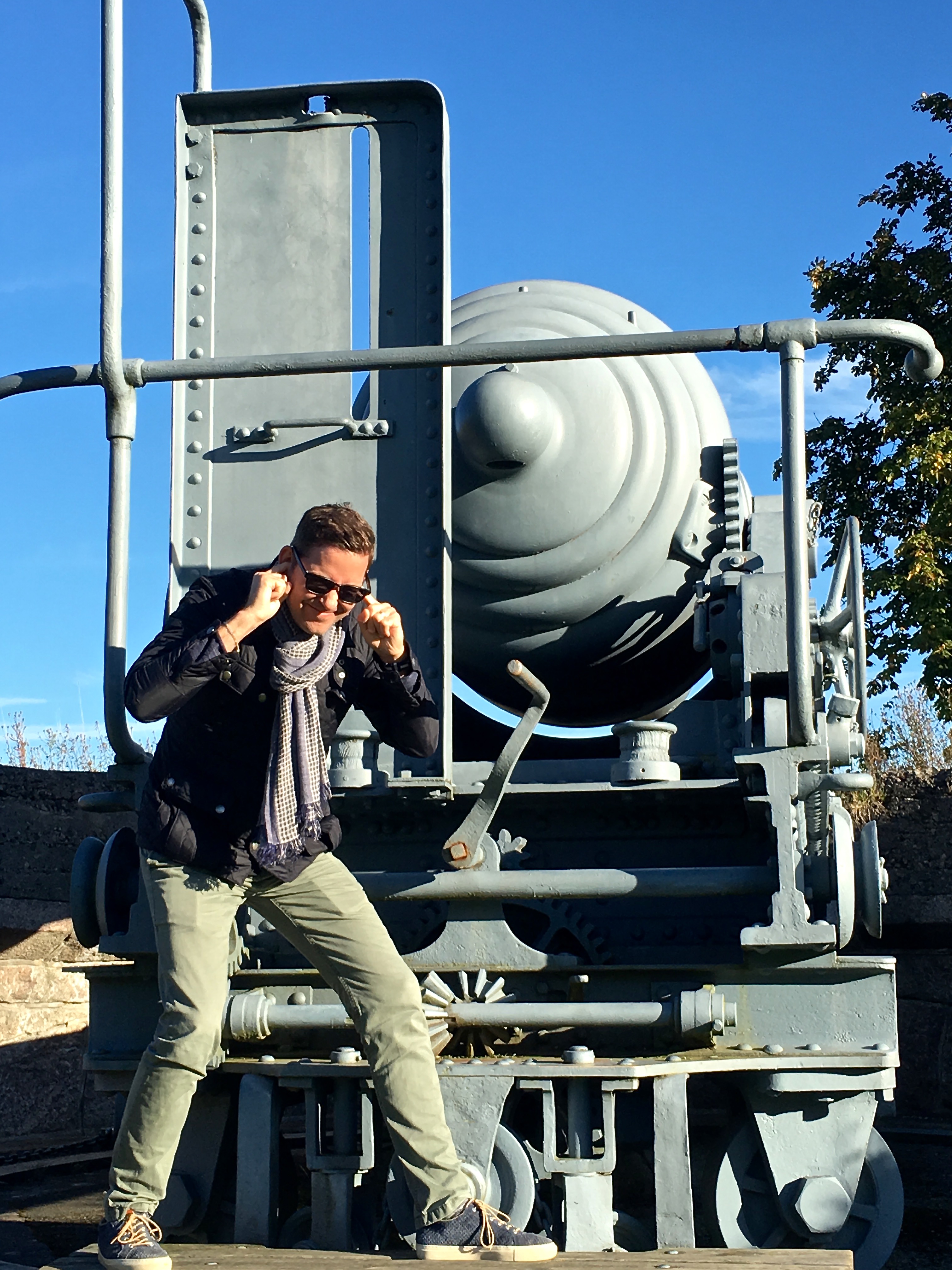 img_7364 December 7, 2016 3024 × 4032 Oscarsborg Fortress Yes, dear, big gun go BOOM! I’m thinking he might need something more than just his fingers in his ears for protection.