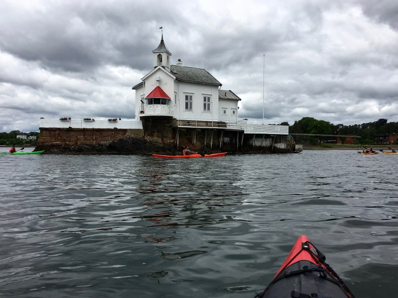 I took this photo during our kayak trip this summer, when I got a better view of the lighthouse’s beacon. The original lantern (no longer working) sits beneath the red roof and has a white light with a focal plane of 6 m (20 ft). Today, modern lights flash white, red or green, depending on the direction, and blink on and off three times every eight seconds.