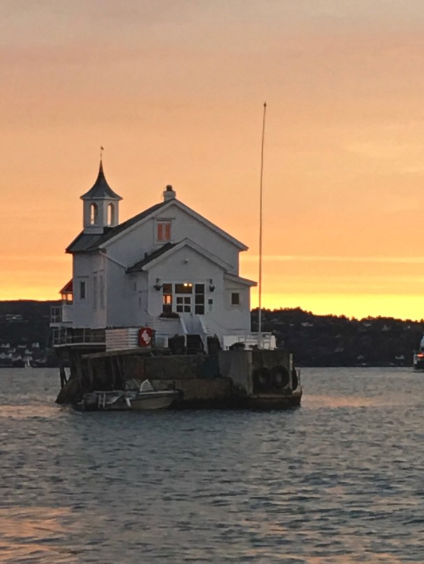 Dyna Fyr was originally equipped with a lantern in one corner (note the bit of red roof poking out on the left) and a fog bell in the steeple overhead. Today, modern lights flash white, red or green, depending on the direction you’re coming from (each color indicates how far away you are from the shoals.) They blink on and off three times every eight seconds.