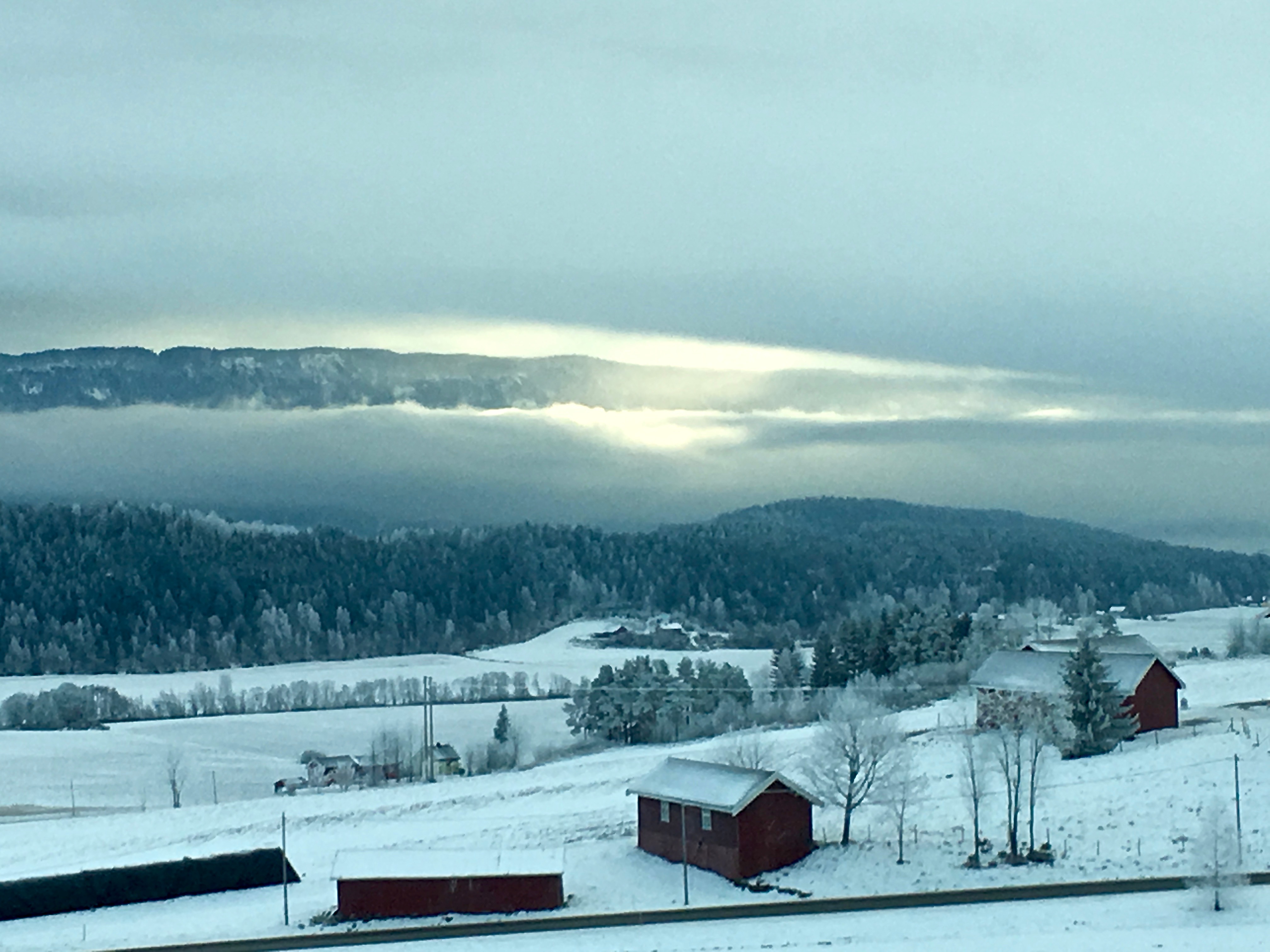 Our journey took us past gently rolling hills blanketed in snow and wreathed in moody fog. And as predicted by our Norwegian colleagues, the drive was one of the prettiest we’d experienced near Oslo — all crystalline stillness and frozen light.
