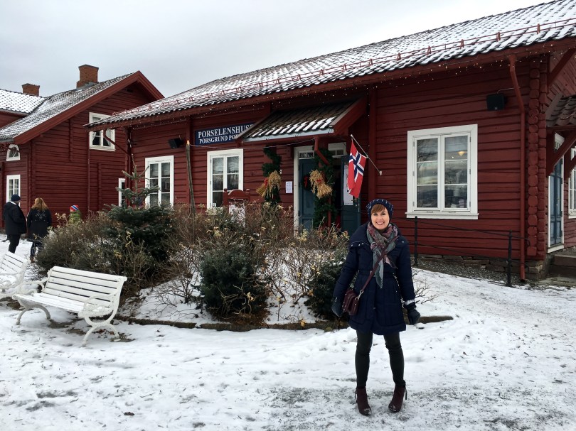 img_7647 December 22, 2016 4032 × 3024 A Hadeland Holiday I’m standing in front of the “Honey House,” an old worker’s cottage that has been repurposed to feature locally produced honey and the necessary accoutrement. In summer, kids can work with the glassblowers and make their own honeypots.