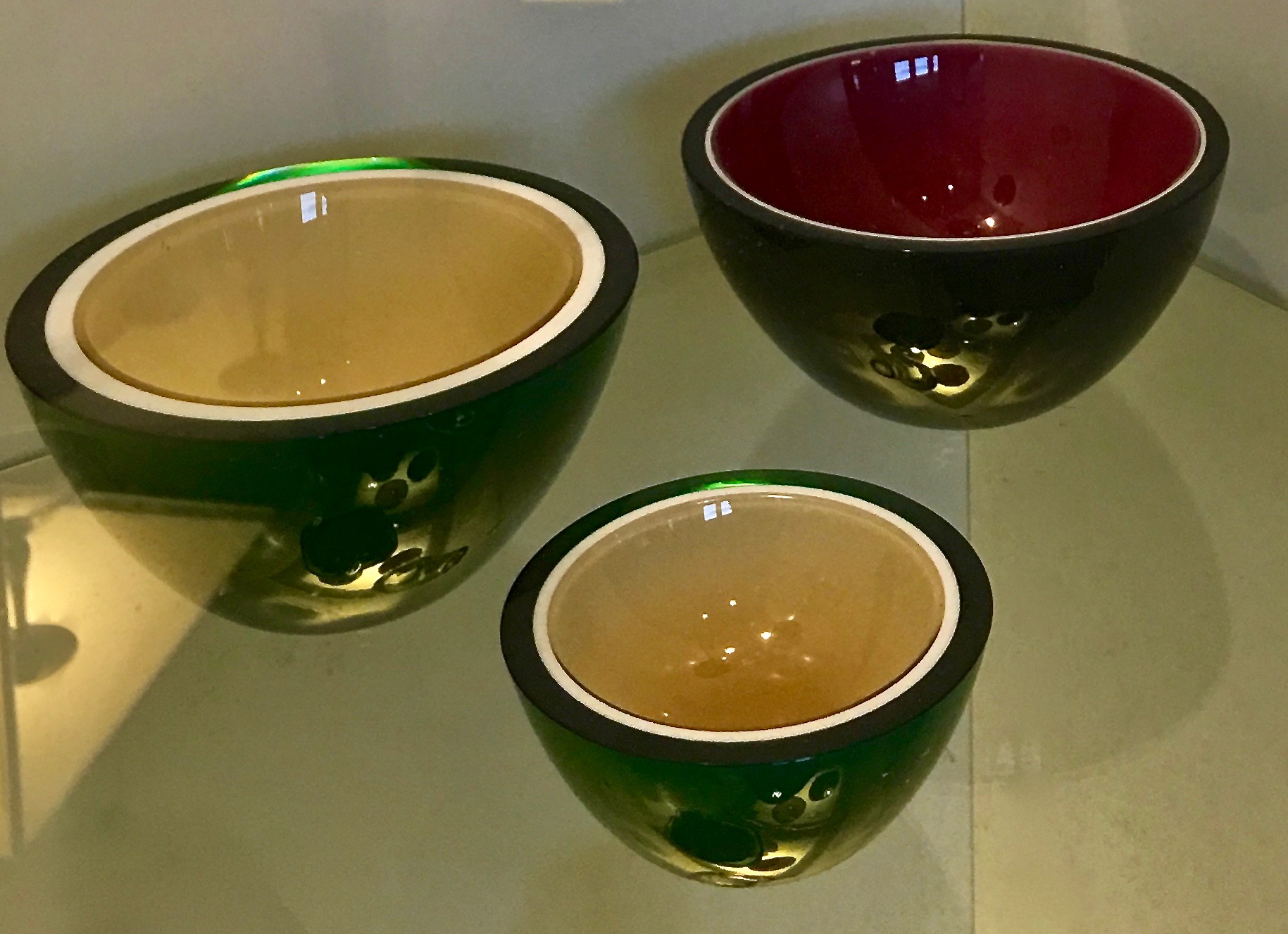 I’m crazy for these bowls, with their simple, pure shape and metallic finish. By the way, adding metallic oxides is what gives color to basic clear glass. Iron and chromium oxides produces the color green, while selenium and gold oxides produce red. Sulfur and metal sulfides produce yellow.