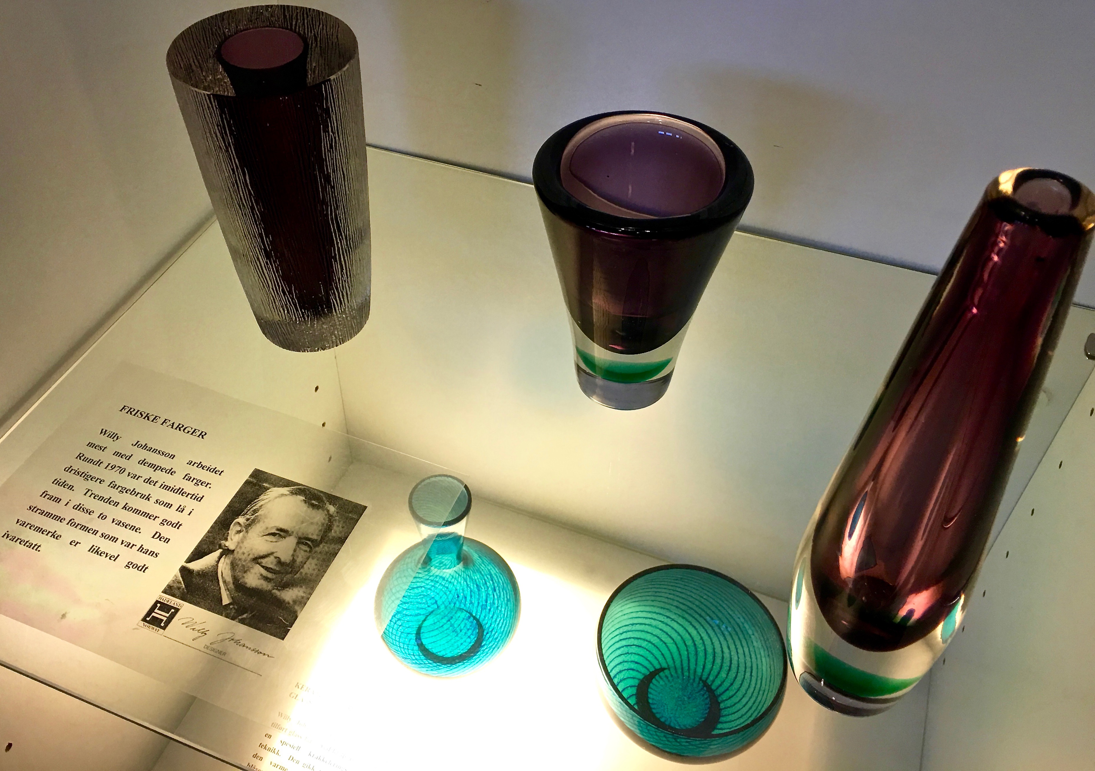 img_7665 January 4, 2017 3721 × 2621 A Hadeland Holiday Check out these fab pieces with their funky disco-era colors. These were made by Friske Farger during the 1970s. More fun facts about color: blue comes from cobalt oxide, while copper oxide produces turquoise. Manganese creates the purple shade.