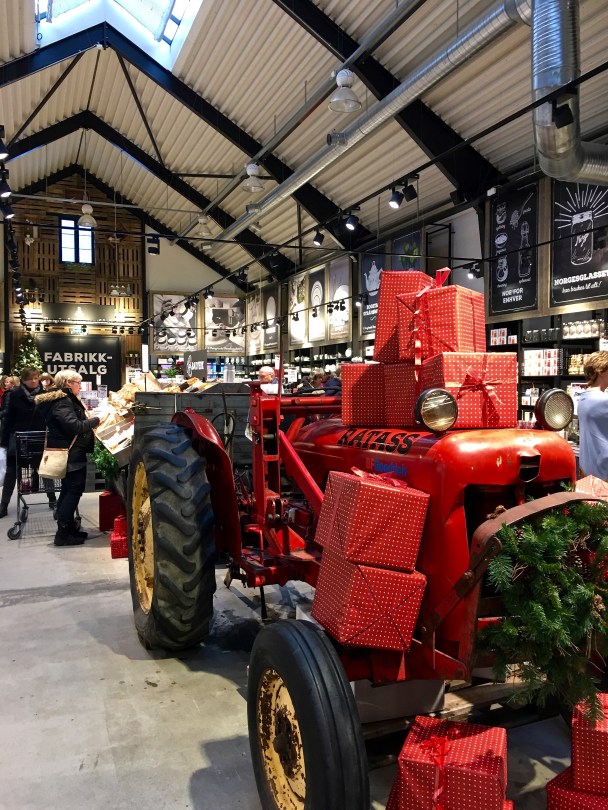 Looks like the Julenisse (Santa) will be delivering gifts via tractor this year. I’m confused about his tractor’s name, however — it doesn’t sound like a suitable replacement for Prancer. BTW, Norwegians pride themselves on being farmers (like their Viking ancestors, whose raids were all about finding new farmland and trade routes), and you’ll see tractor logos all over everything.