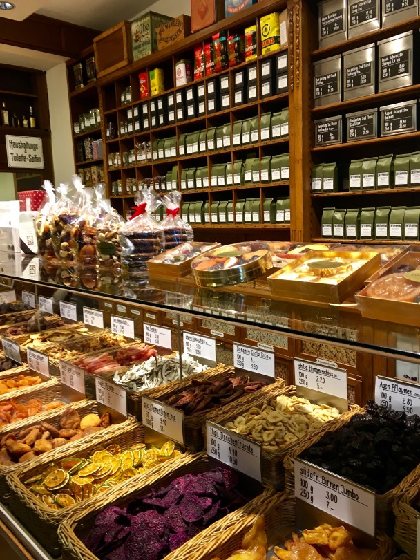 img_8100 January 16, 2017 3024 × 4032 Swiss Christmas in Zürich Schwarzenbach is a 100-year-old grocery store specializing in dried teas, fruits, herbs, etc. Everything’s sold by weight in loose bags — a trend that seems to be coming back into fashion as folks look for less processed foods with less packaging.