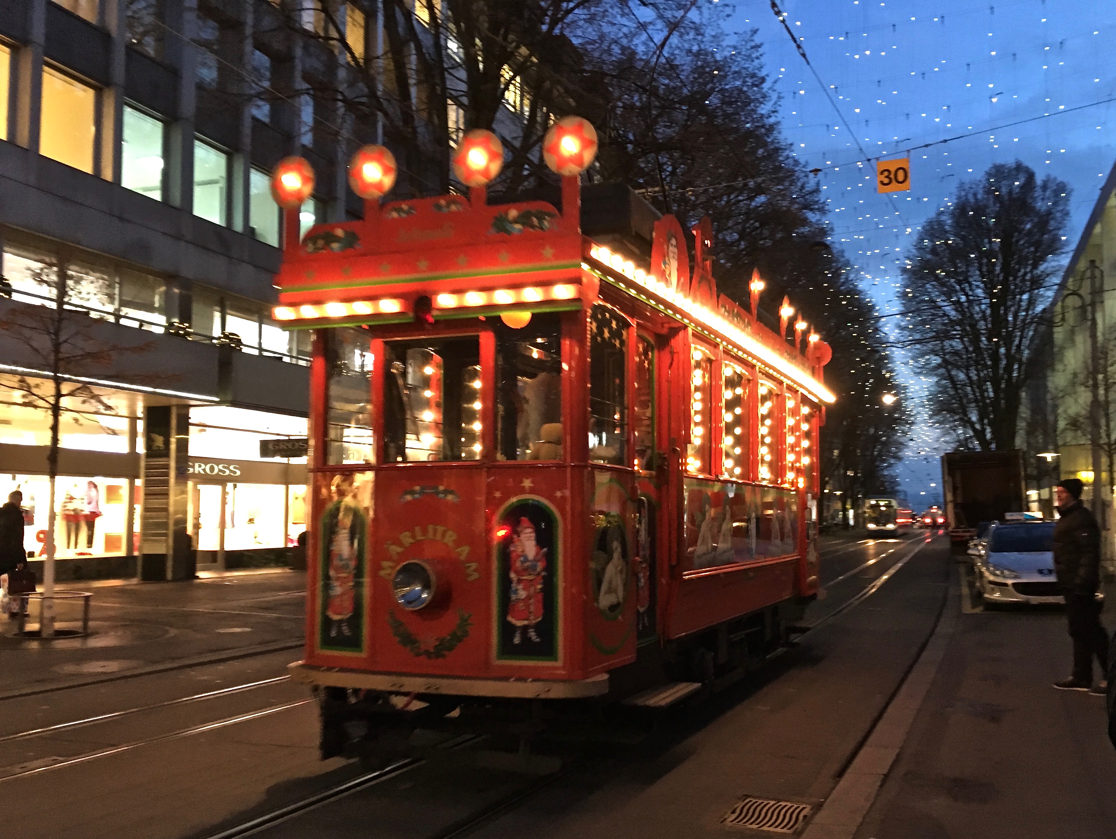 I was so bummed we didn’t have time to take the two-hour dinner trip aboard the festive little Fondue Train. It runs every year from the beginning of November until the end of February. (Fondue is another traditional Swiss cuisine, which we indulged in later during our trip.)
