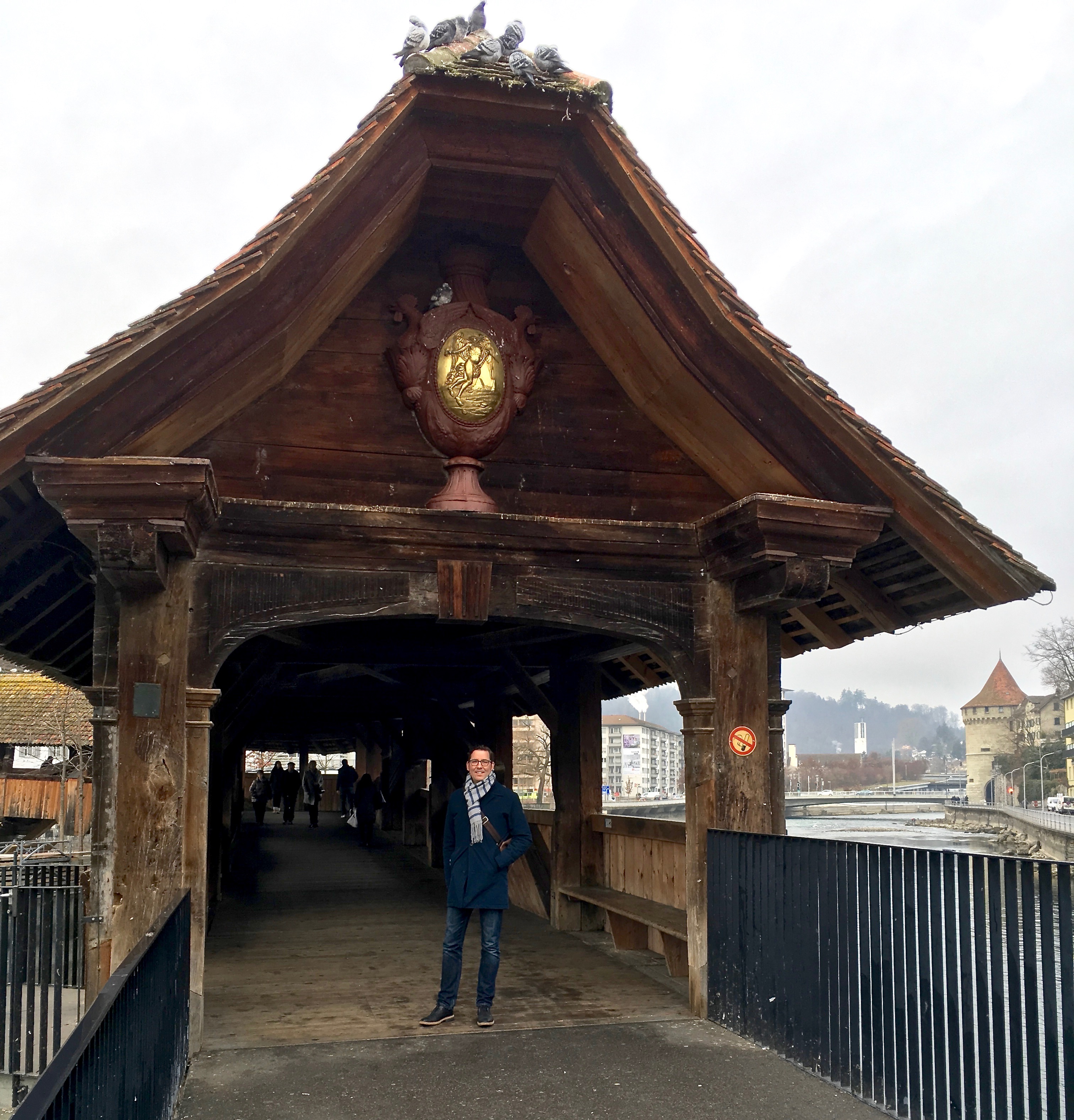 From our hotel room, we had a perfect view of the Reuss River and the Spreuerbrücke. It’s commonly called the Mill Bridge because three grain mills once operated here. The name “Chaff Bridge” comes from the fact that folks were allowed to toss the wheat chaff into the water from this point, since it was the furthest bridge downstream, away from the lake and city. Today, a hydroelectric plant beneath the bridge generates power for 1,000 Luzern households.
