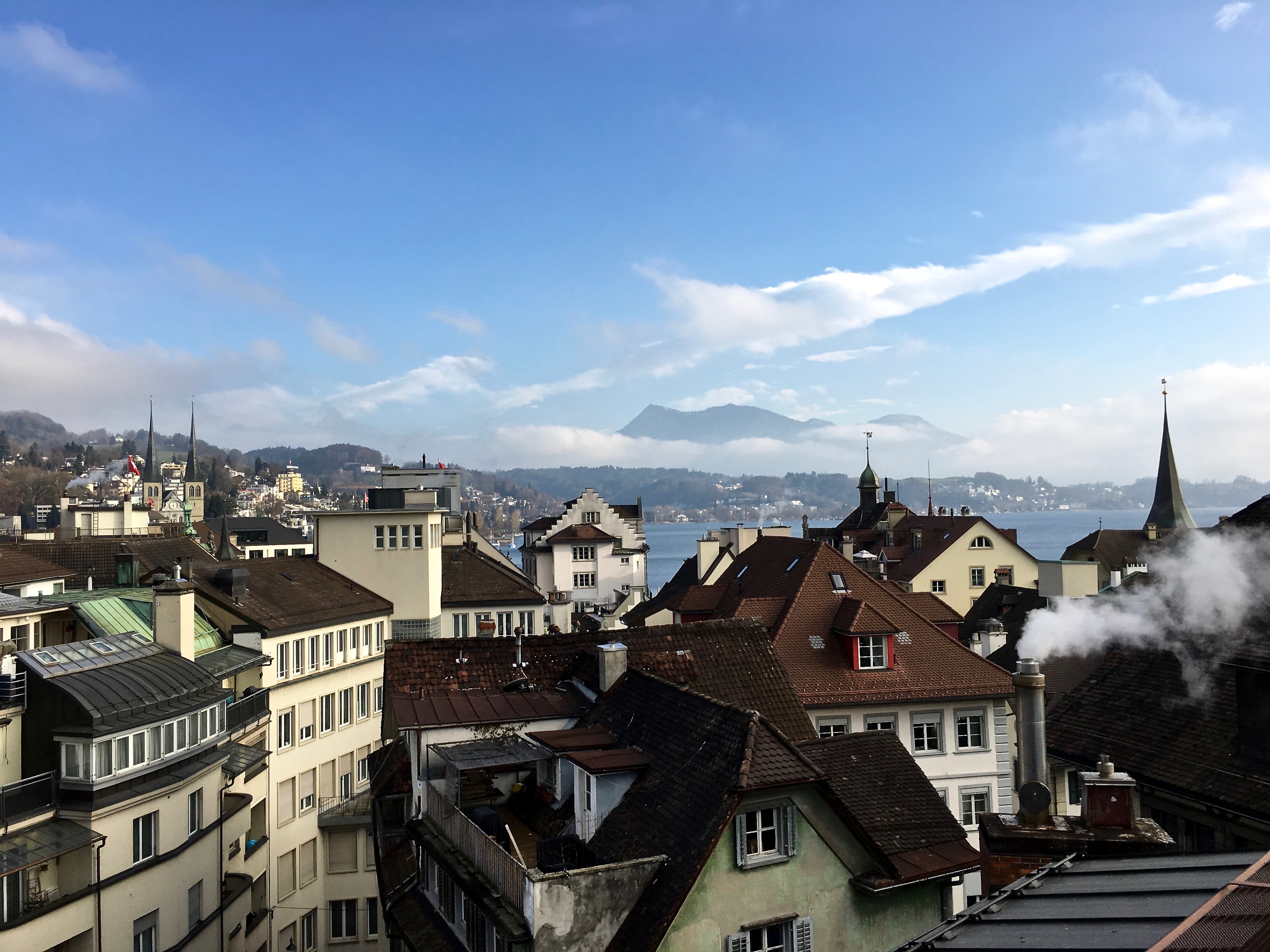 We captured one of our favorite moments on the rooftop of Manora, a department store in Old Town. We grabbed our lunch at the store’s cafeteria and carried it up to the deck for a spectacular view out over the city. Notice in the background that you can see Mt. Pilatus peeking through the clouds.