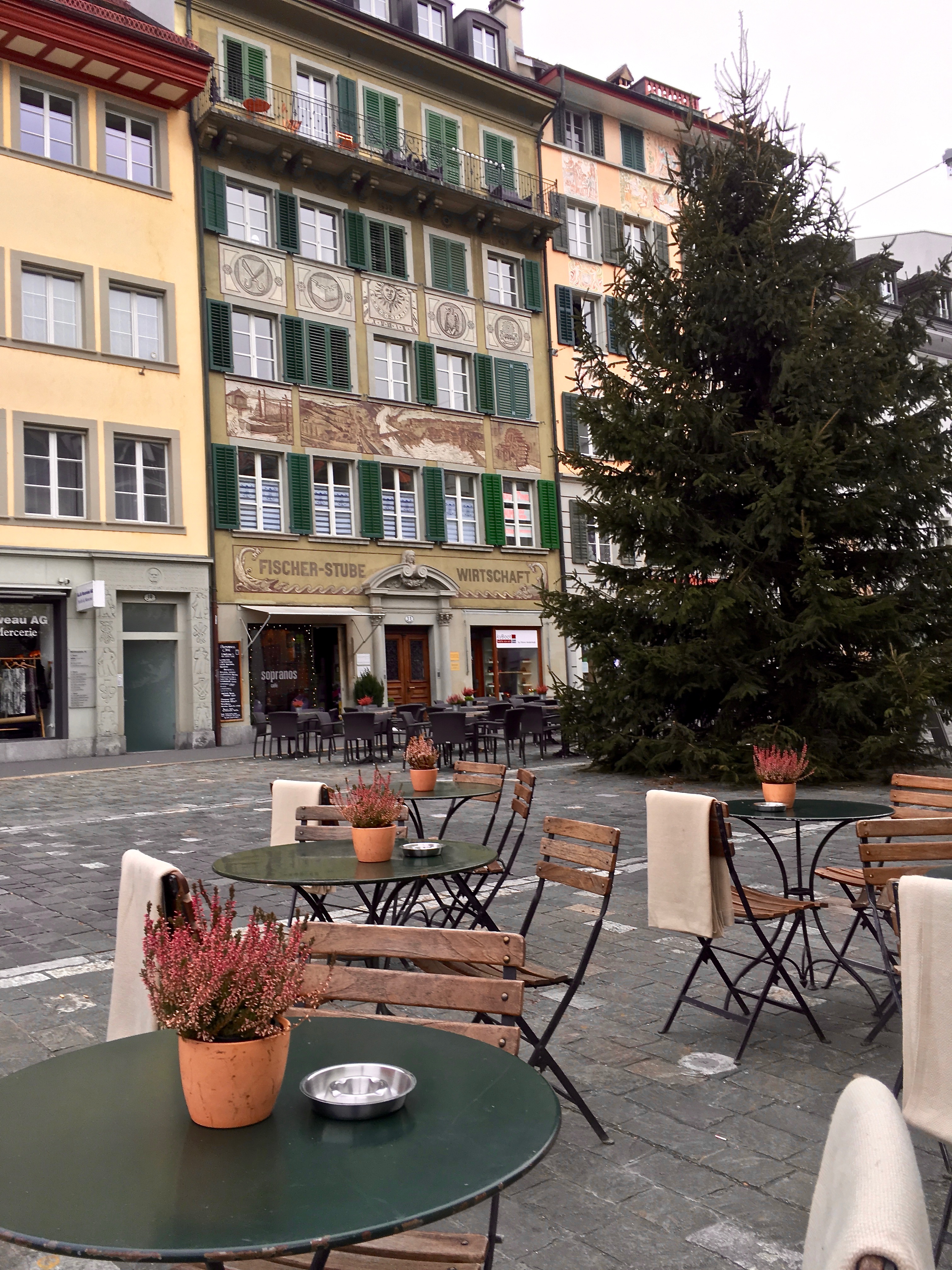 img_8254 January 19, 2017 3024 × 4032 Luzern’s Christmas Pageantry In the background, you can see the Fischer-Stube façade, which portrays the grain mills of Luzern that once stood along the Ruess River, next to the Spreuerbrücke (Chaff Bridge).