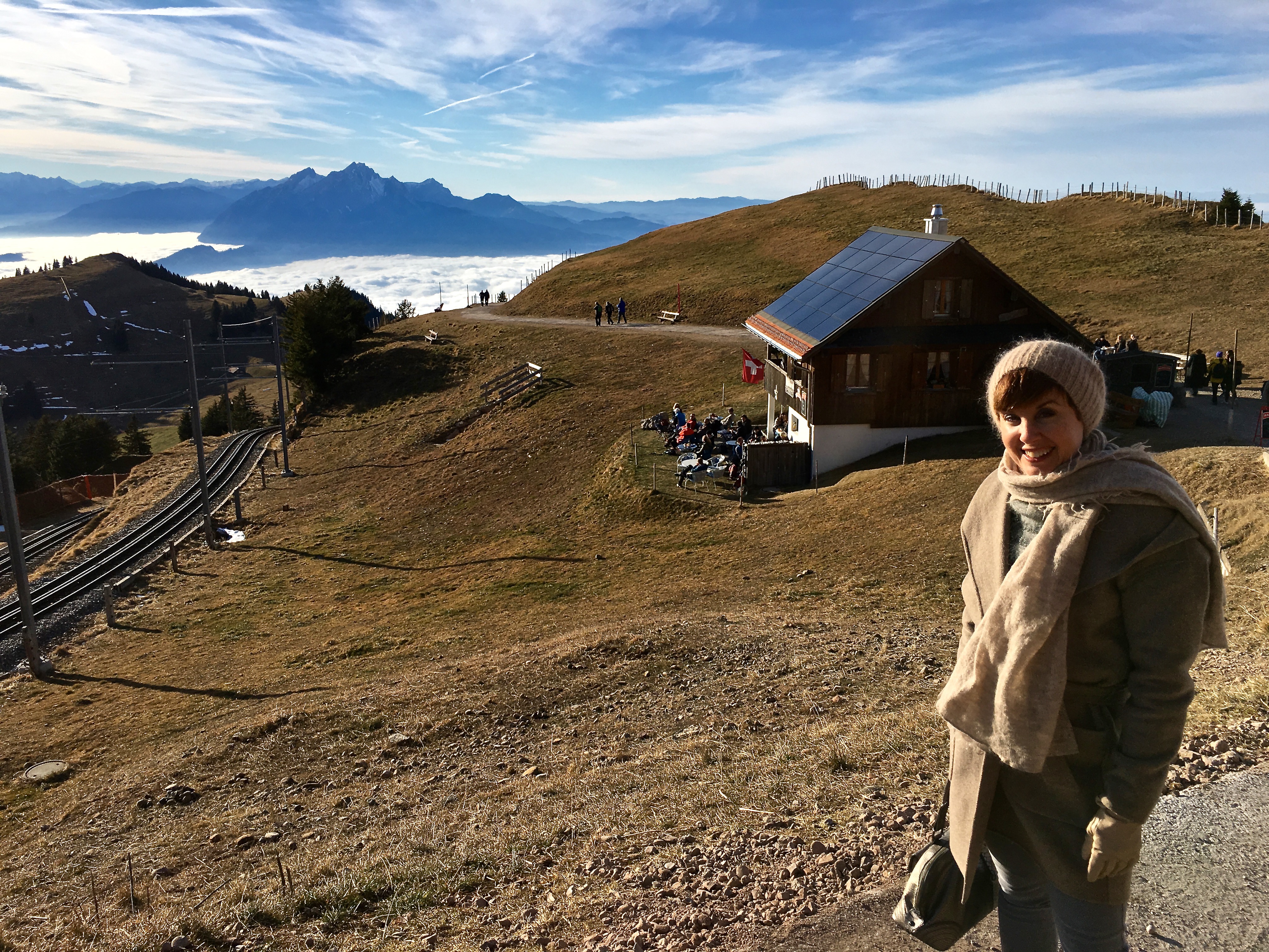 img_4455 January 27, 2017 4032 × 3024 Ascending the Swiss Alps The adorable Kisseboden Restaurant basks in the sunshine behind me. Note all the solar panels!