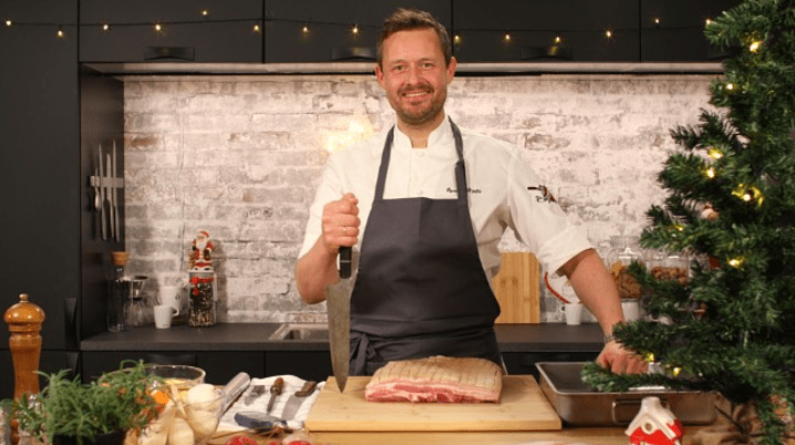 As part of “Kvelden før Kvelden,” food enthusiast Jørn Hoel and TV chef Øyvind Hjelle showed folks how to make “ribbe” — roasted pork belly. It’s one of three traditional Norwegian Christmas dishes, along with lutefisk (fish preserved in lye) and pinnekjøtt (mutton ribs that have been cured, dried, smoked, then reconstituted and steamed over birch sticks.)