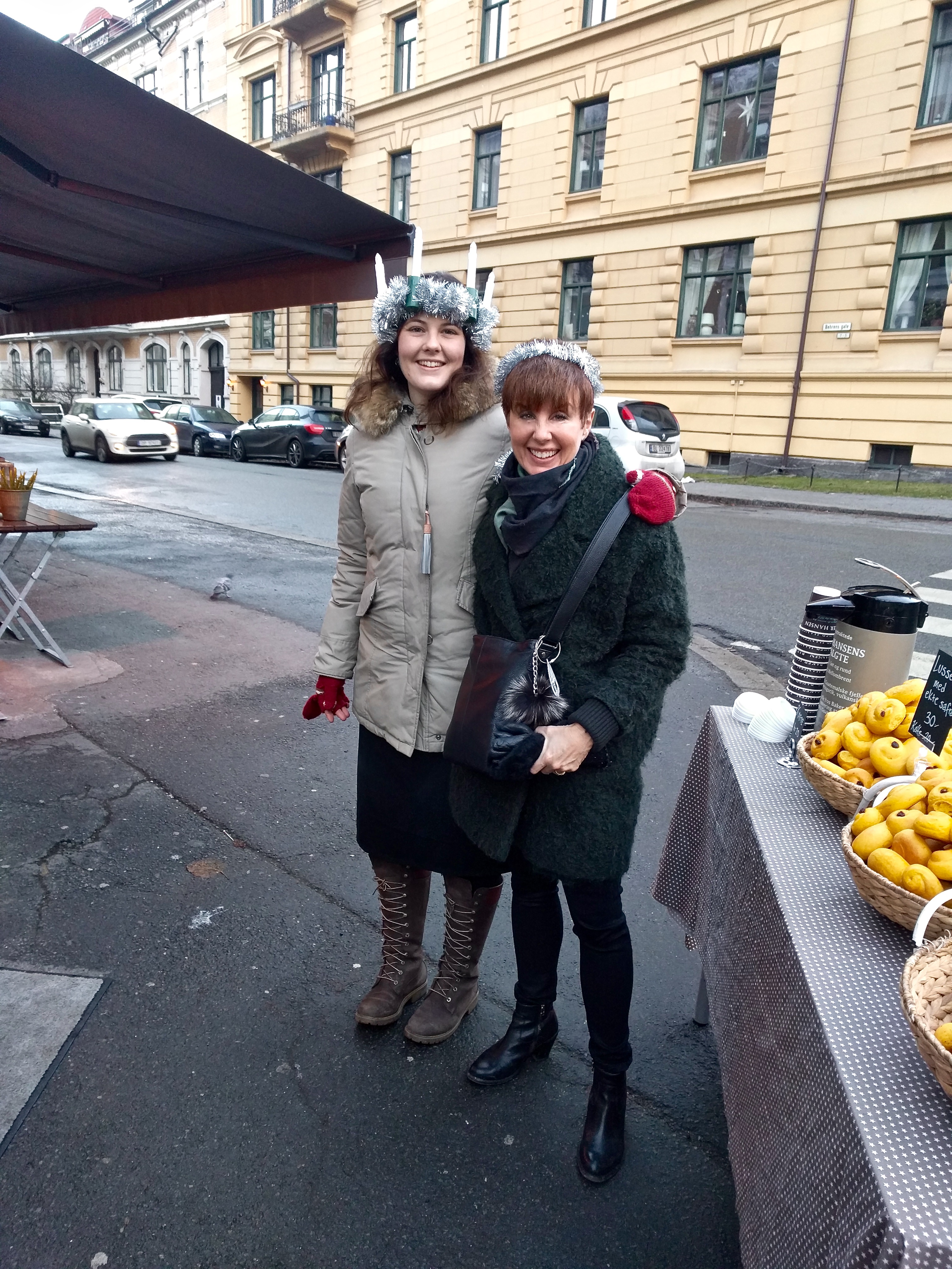 On Santa Lucia Day, my friend Molly (who’s Swedish and tells me that the holiday is a much bigger deal in her home country) gifted me with my own little Lucia crown. Molly runs the Baker Hansen near me in the Frogner neighborhood — note the yummy saffron buns and coffee, both traditional Santa Lucia foods.