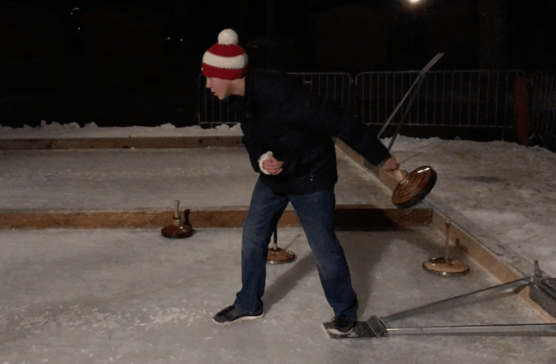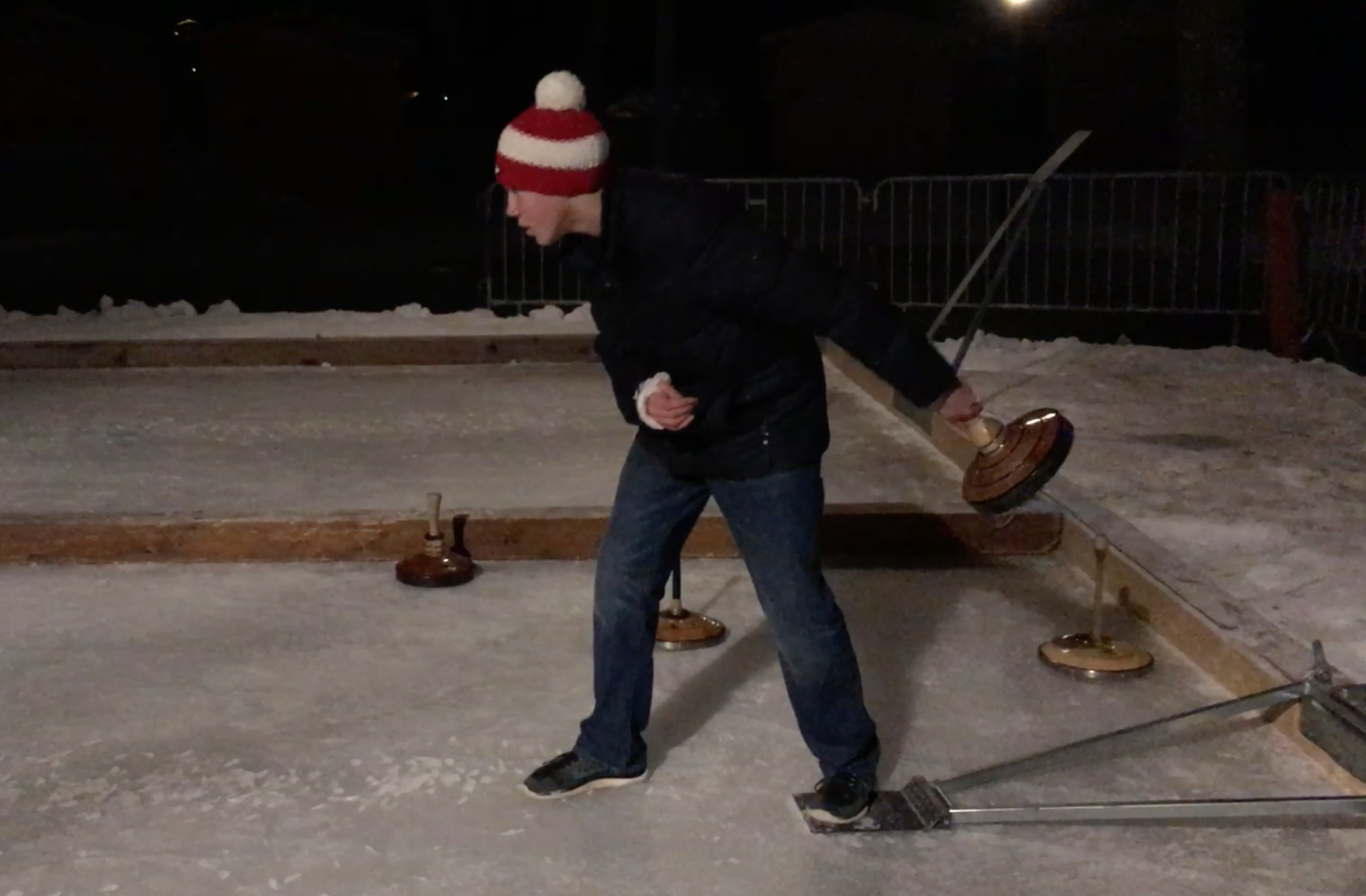 eisstock February 22, 2017 1894 × 1242 New Year’s in the Austrian Alps Lukas shows us how it’s done left-handed. The metal skid plate he’s standing on is intended to give him traction so he doesn’t slip and fall while throwing the weight.