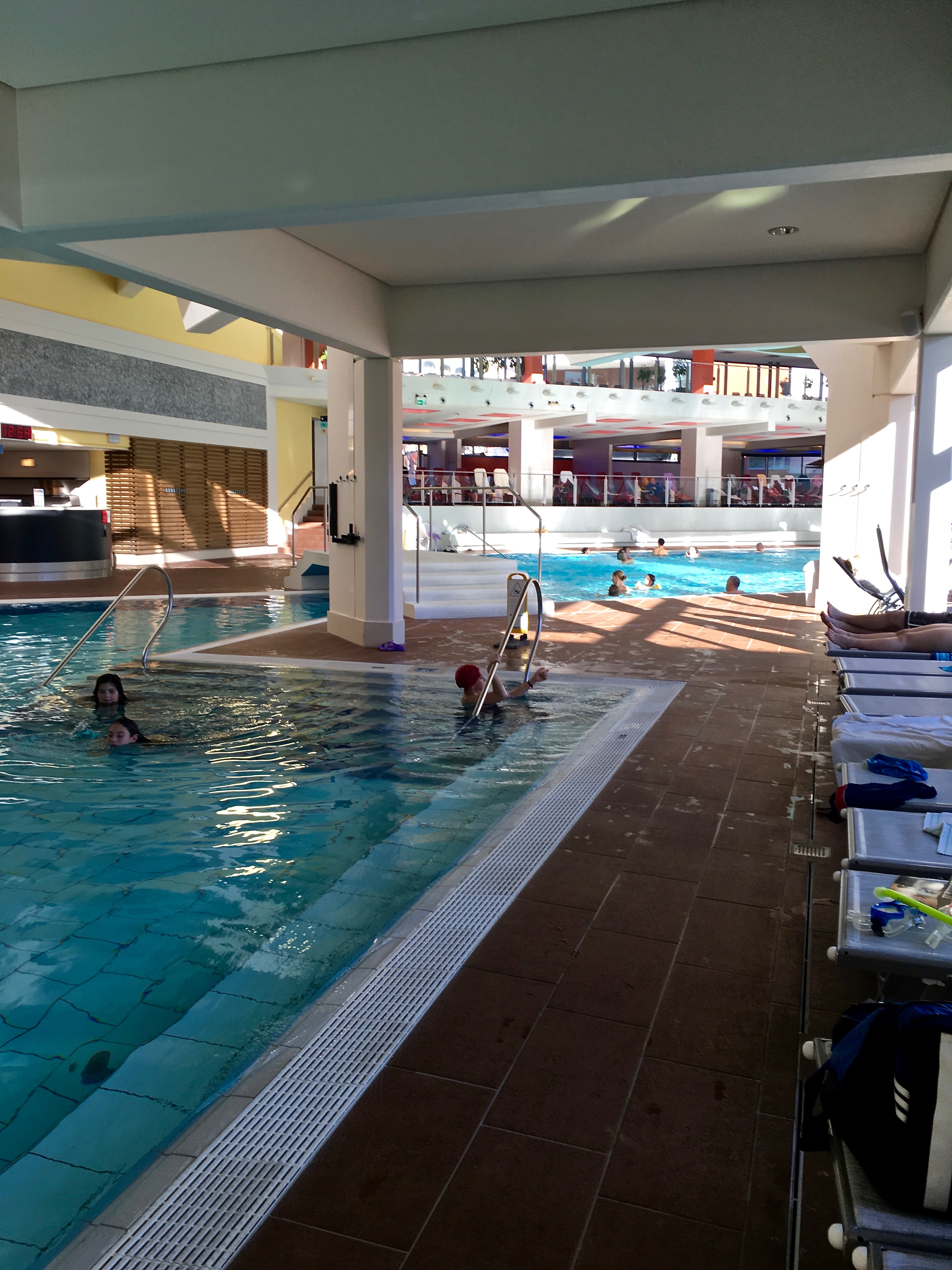 img_9389 February 24, 2017 3024 × 4032 New Year’s in the Austrian Alps A closer view of two of the indoor pools. The upper level has a lounge if you want to get a snack and a beverage, but there’s a full-scale restaurant, too, if you want a bigger meal.