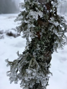 The trees themselves sported a dense coating of what appeared to be freezer frost, the ice crystals so thick that a chisel would surely be needed to locate bark.