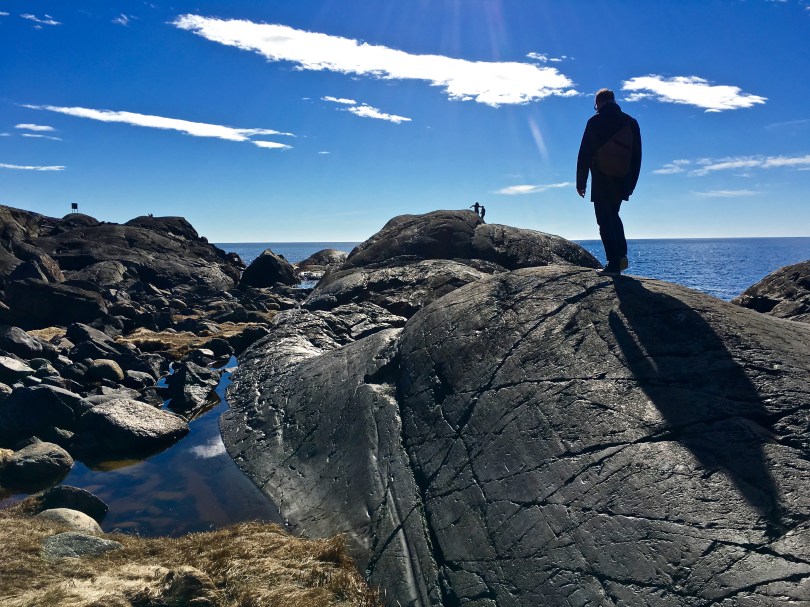 IMG_0224 June 29, 2017 4032 × 3024 Whalers, Vikings, Stone Circles … and Porcelain? Looks like Matthew is taking a stroll down a blue whale’s back, right? It’s actually a huge finger of lava that sticks out into the sea.