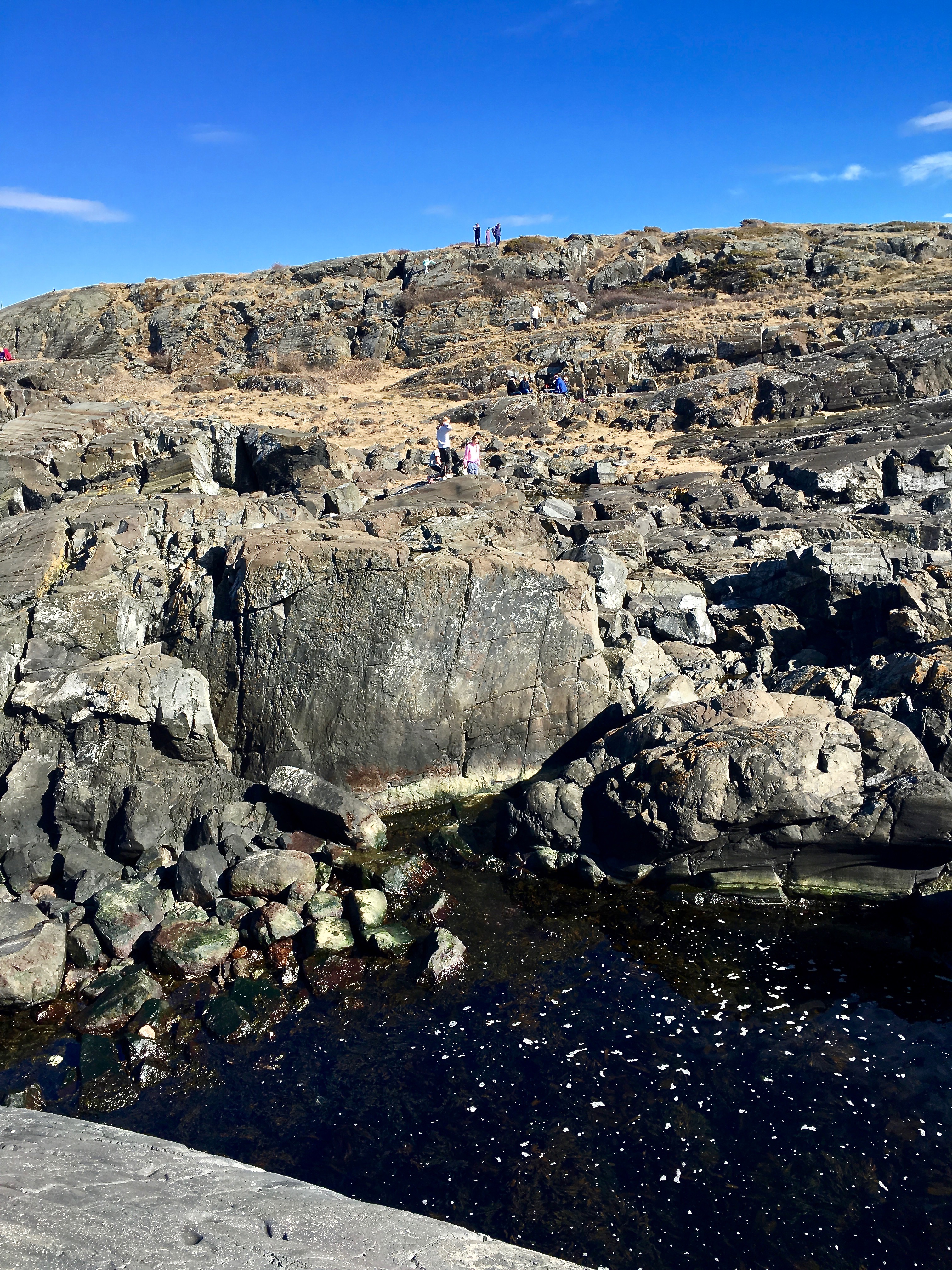 IMG_0232 June 29, 2017 3024 × 4032 Whalers, Vikings, Stone Circles … and Porcelain? Note the crowd of folks walking along the North Sea Trail, which stretches along the shore here and runs more than 3,100 miles (5,000 km) along the coastlines of Norway, Sweden, Denmark, Germany, the Netherlands, England, and Scotland.