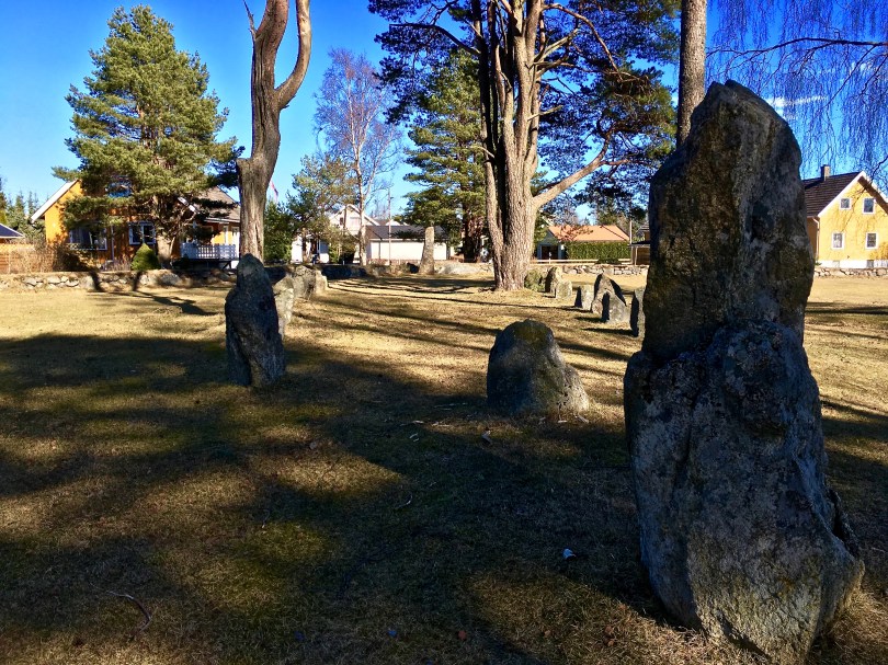 As you can see, the modern world has closely encroached on the Elgesem gravesite. Only 21 of the original 38 stones survive intact today. The ship formation measures roughly 31 feet long by 23 feed wide (40 m x 7 meters) and is oriented on an east – west axis.