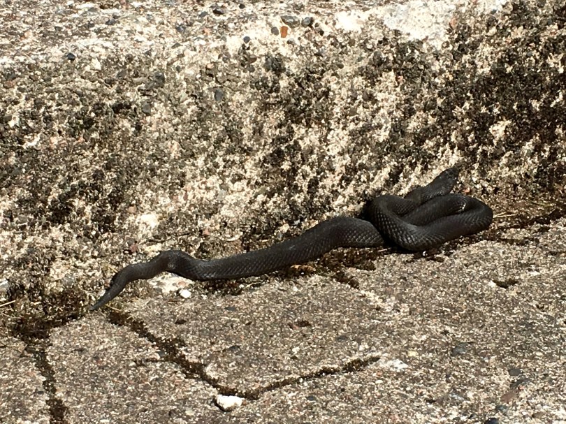 The first viper we spied was a melanistic one, meaning it lacks the genes for the lighter coloring that is typical in the species. It’s commonly called a “black adder.” And no, it’s not a reference to an early role played by Rowan Atkinson of Mr. Bean fame.