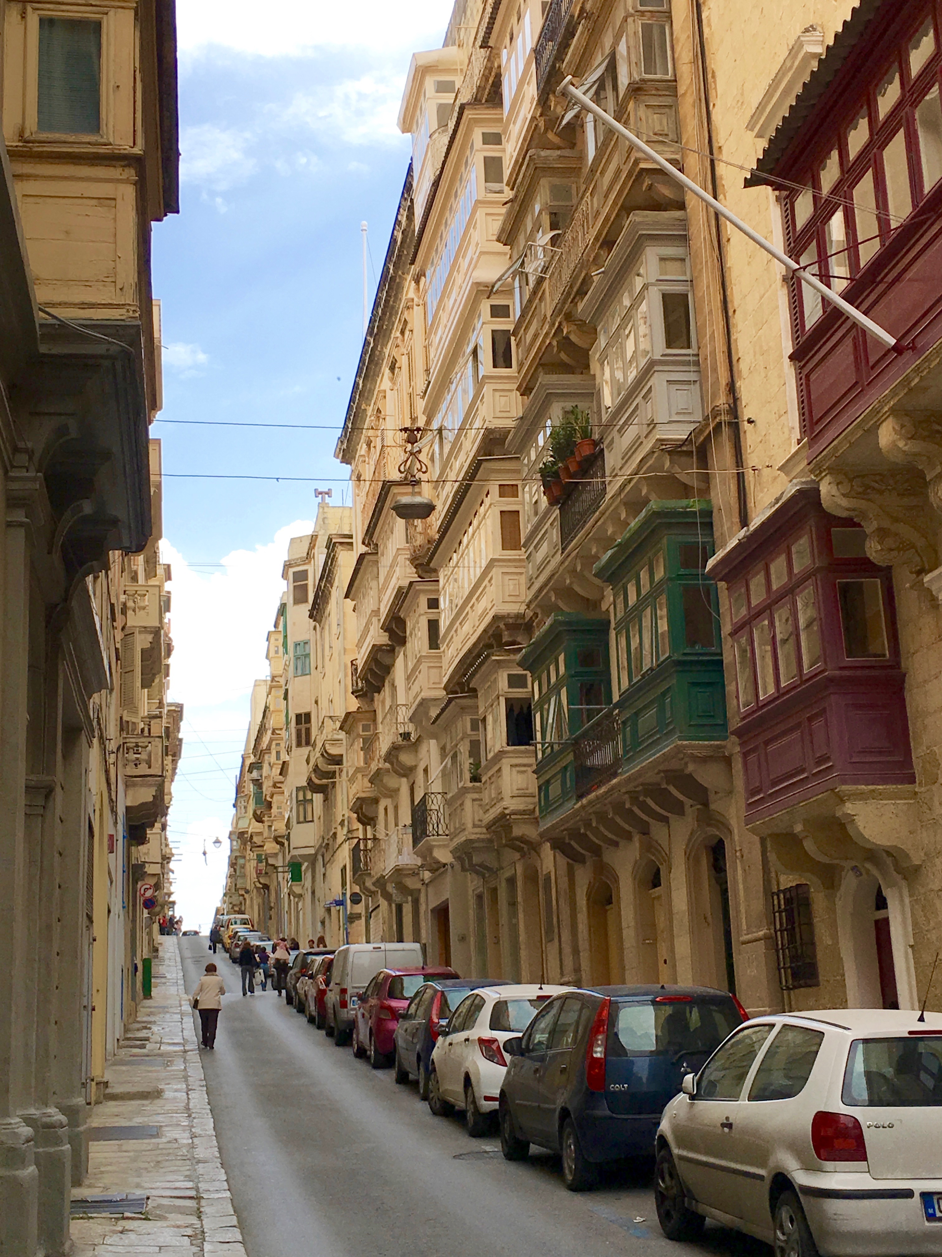 Beyond Malta’s fortifications, its second-most distinctive feature is its “peekaboo porches,” which have Moorish origins. Like barnacles on a boat dock, these fanciful balconies coat most every building on Malta.