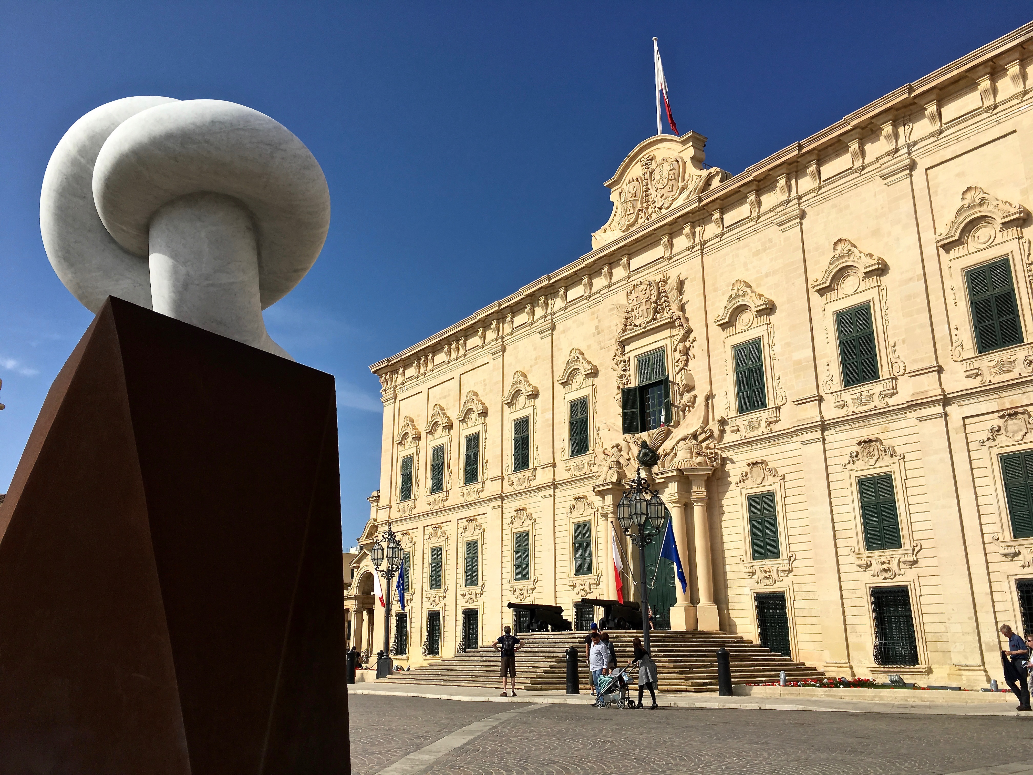 Malta’s capital city of Valletta contains hundreds of architectural masterpieces and historical monuments. The “Knot” sculpture in front of the fabulous Baroque post office is dedicated to the 2015 Valletta Summit on Migration and symbolizes Malta’s position as the link between the continents of Europe and Africa.