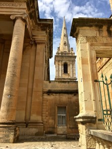 The spire of St. Paul’s Anglican Cathedral is one of Valletta’s skyline landmarks. It was built on the site of the old Auberge (inn) for the German branch of the Knights Hospitallers. There were eight branches in all, based on the languages and lineages of the Knights.
