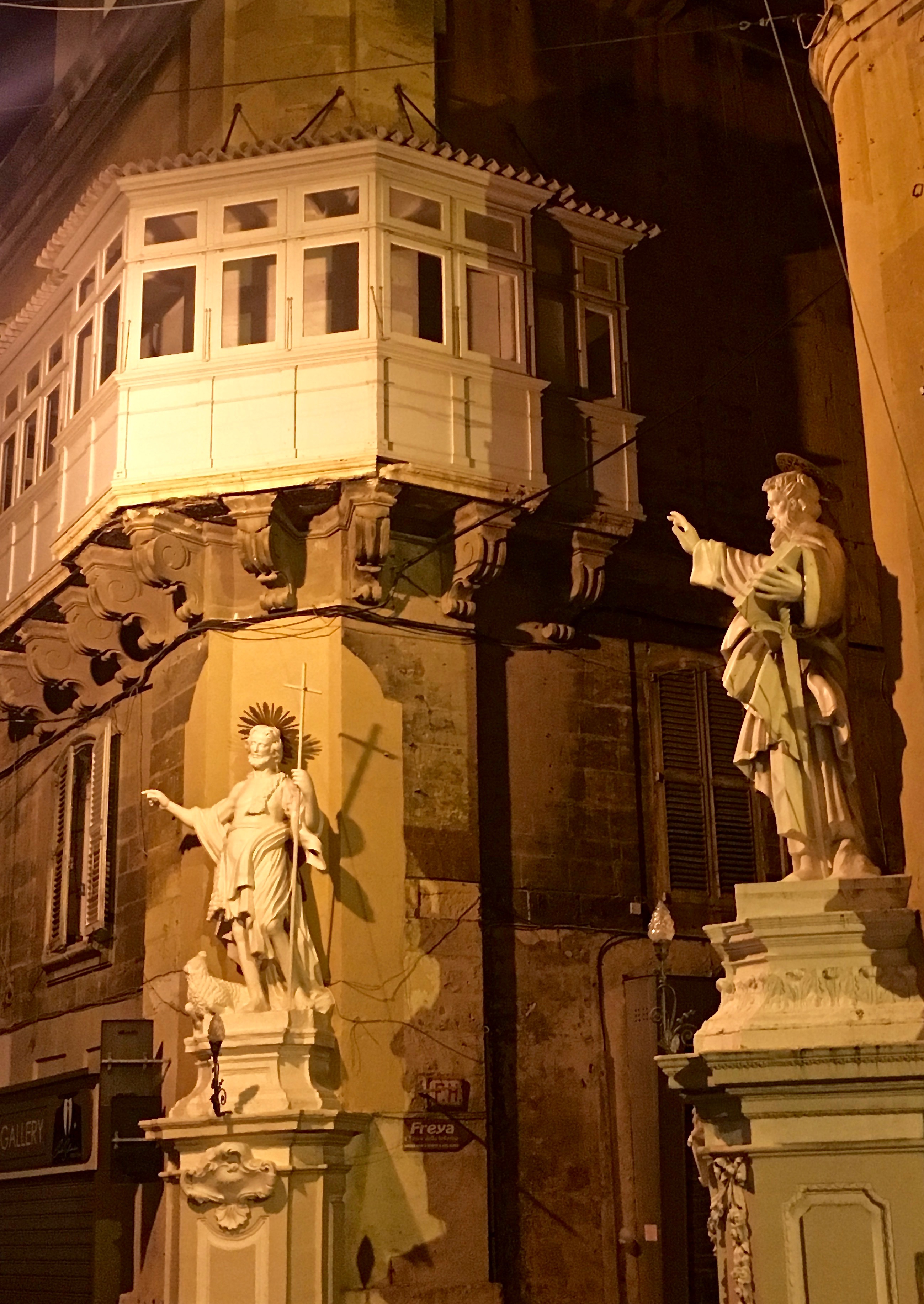 Statues of saints adorn most major intersections in Valletta. Supposedly Jean de Vallette, the Grand Master of the Knights Hospitallers, decreed that every corner of his capital city should hold heavenly reminders to pray.