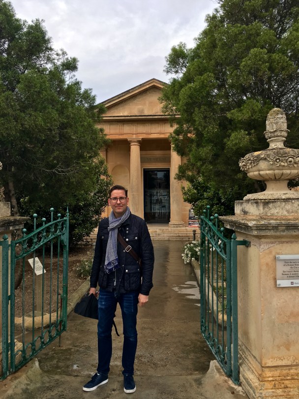 You’re looking at the neoclassical façade of the Domus Romana museum. Inside, you’ll find the ruins of an aristocratic Roman townhome built in the 1st century B.C. and situated on the outskirts of Melite, Malta’s Roman capital. To explain, Rome took Malta from the Carthaginians (Phoenicians) during the Punic Wars in the 2nd century B.C. A Roman official likely lived in the grand home here, which remained in use until the 2nd century A.D.