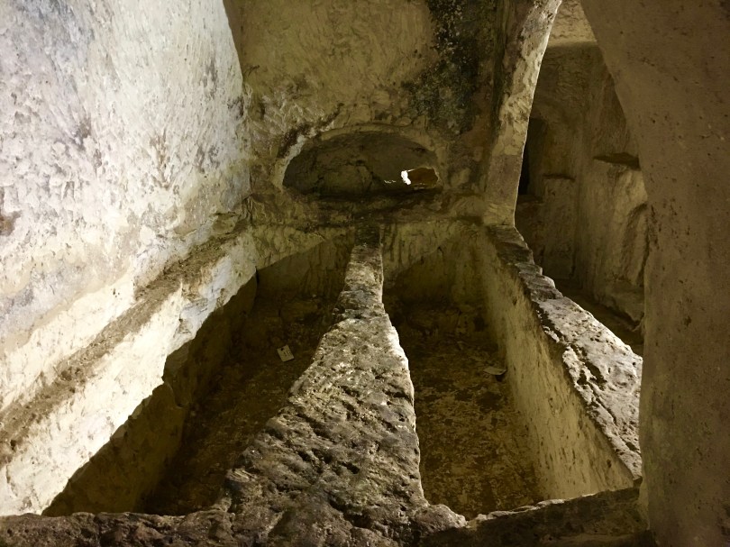 IMG_1784 September 4, 2017 4032 × 3024 Malta: Prehistoric Temples & Pagan Catacombs Look closely at the far end of each sarcophagus, and you’ll see a raised platform with a round divot in it — a pillow to hold the head of the dead.