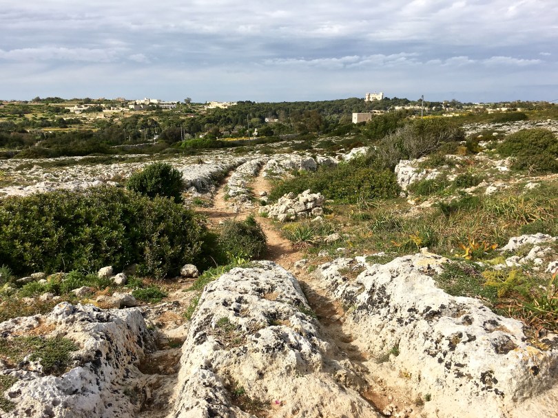 Probably the most basic question is: what made the ruts? Sledges, carts, or travois? We might rule out sledges with runners, which couldn’t have made tracks with such a high center lane or a fluctuating distance between the ruts. (All over Malta, two ruts that run parallel together as a single track aren’t always equidistant from each other. The track can become narrower or wider, and not in any predictable way.) Wheeled carts with a central axis might also have a bit of a problem creating and negotiating such a variable track.