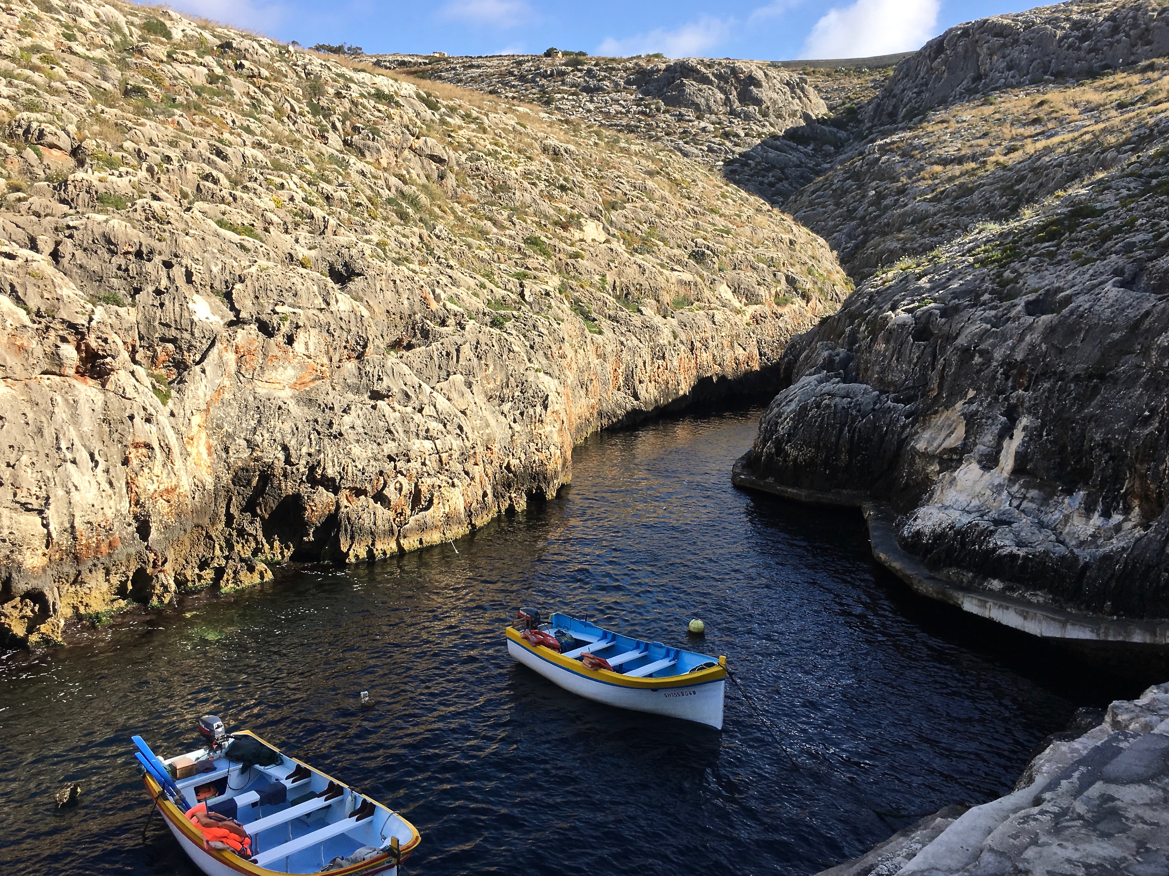 Malta is made up of lots of limestone — the skeletal remains of algae, corals, and mollusks that fell to the bottom of the sea floor over time. The lumpy formation at Wied iż-Żurrieq (the launch point for Blue Grotto excursions) is known as the Lower Coralline Limestone layer and was laid down 35 million years ago. It’s pitted and tunneled almost like a termite mound, a result of weathering by saltwater and acid rain over the years.